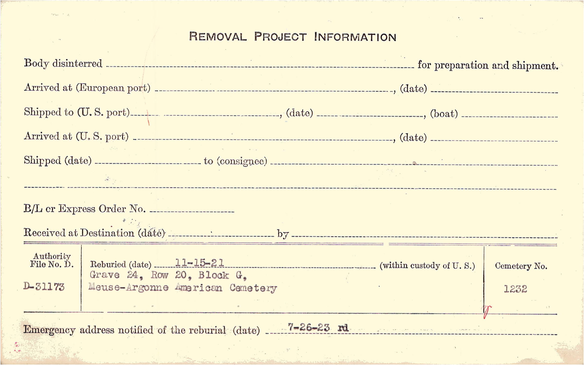 | Permanent Burial in Foreign Cemetery |