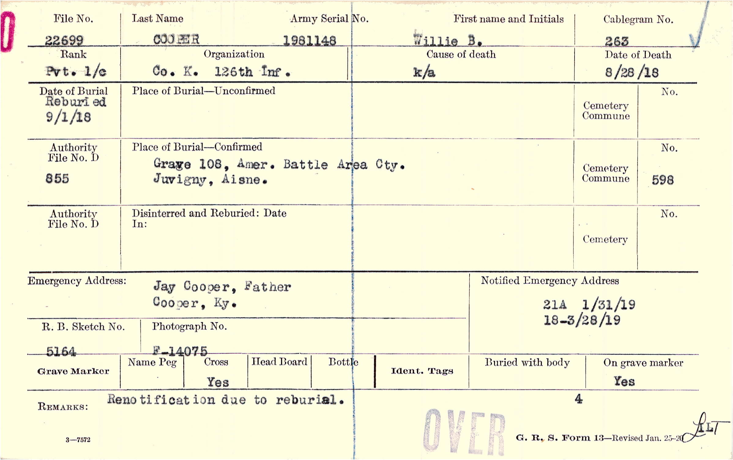 Grave 108, Amer. Battle Area Cty., Juvigny, Aisne.