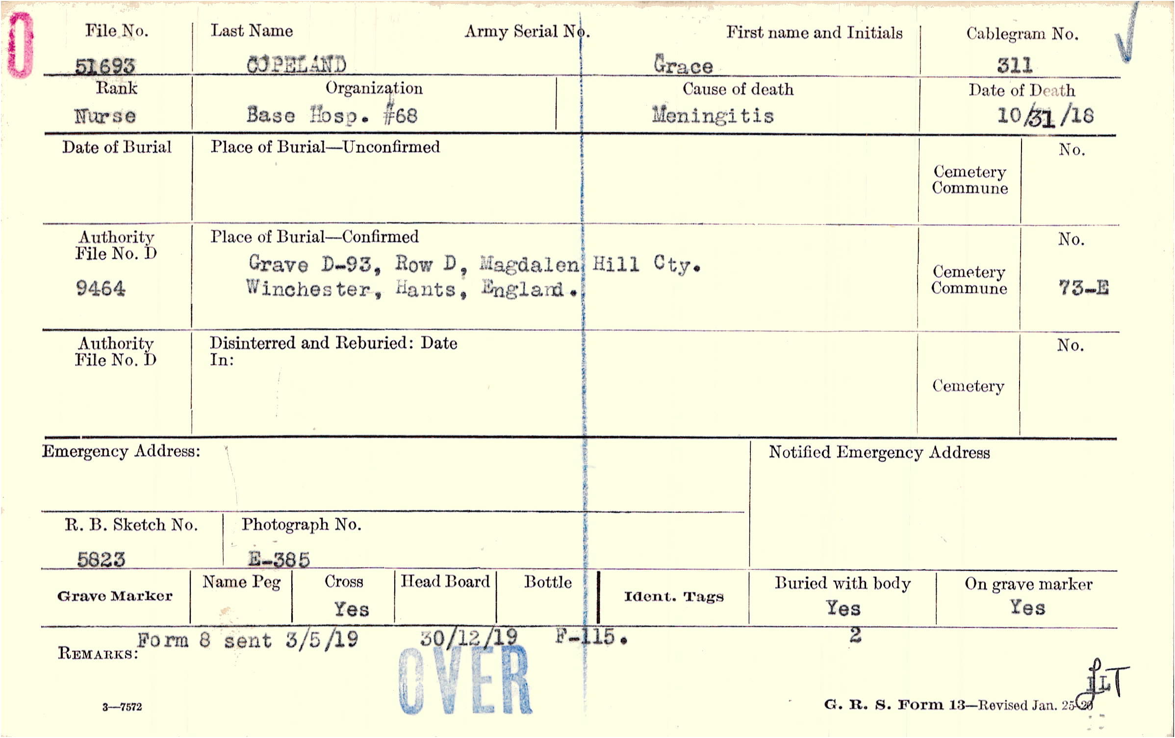 Grave D-93, Row D, Magdalen Hill Cty., Winchester, Hants, England