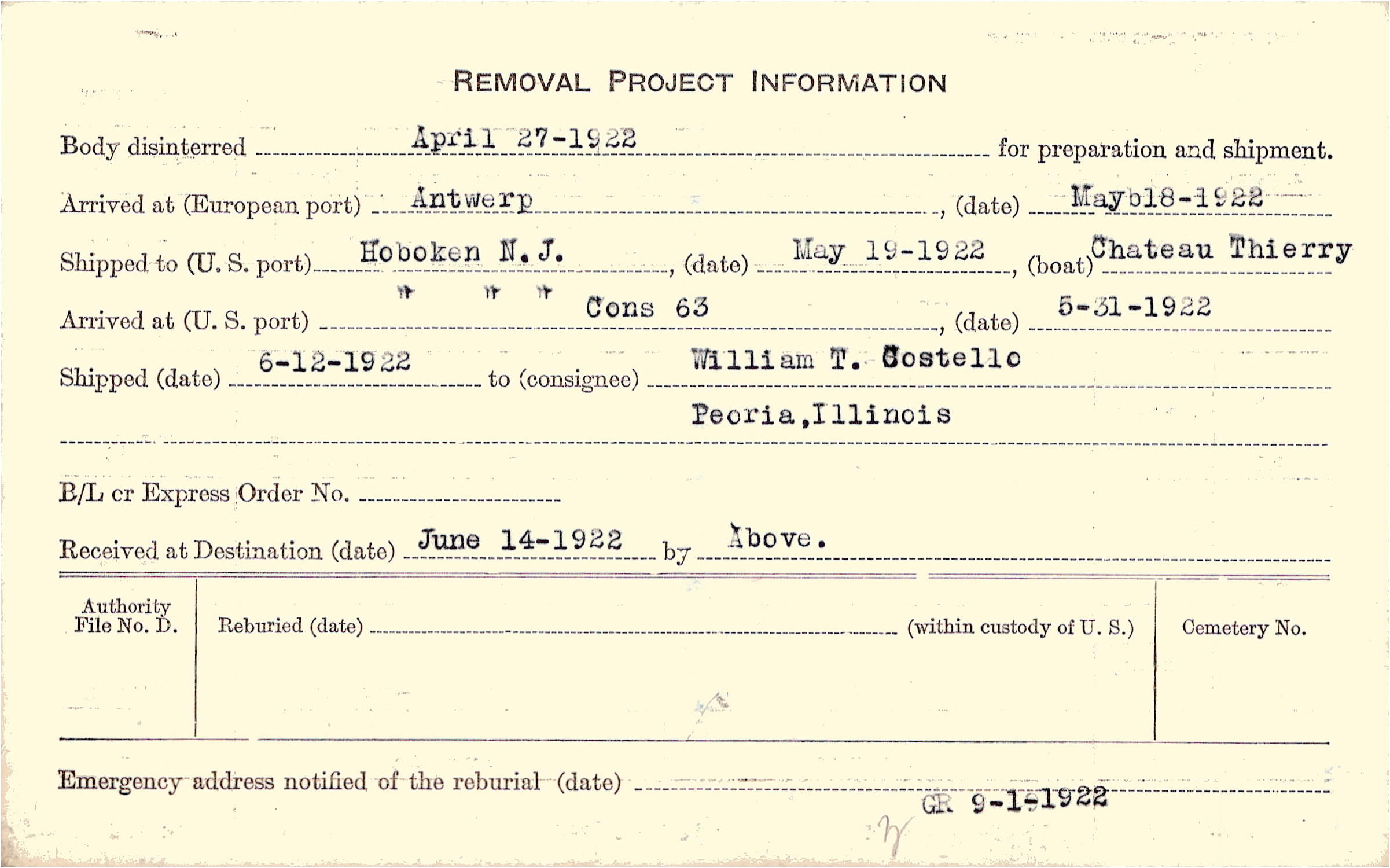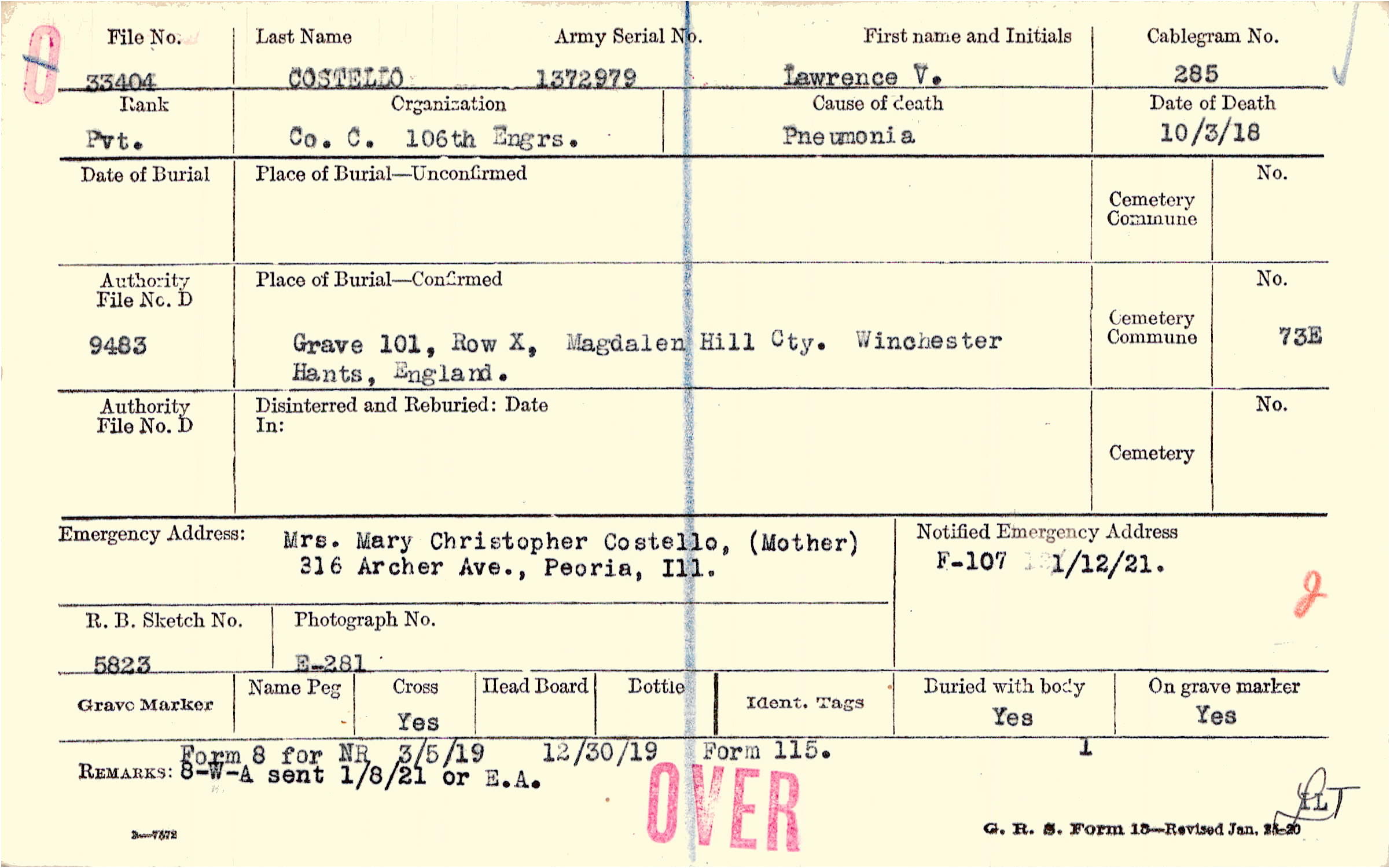 Mrs. Mary Christopher Costello, (Mother), 316 Archer Ave., Peoria, Ill.