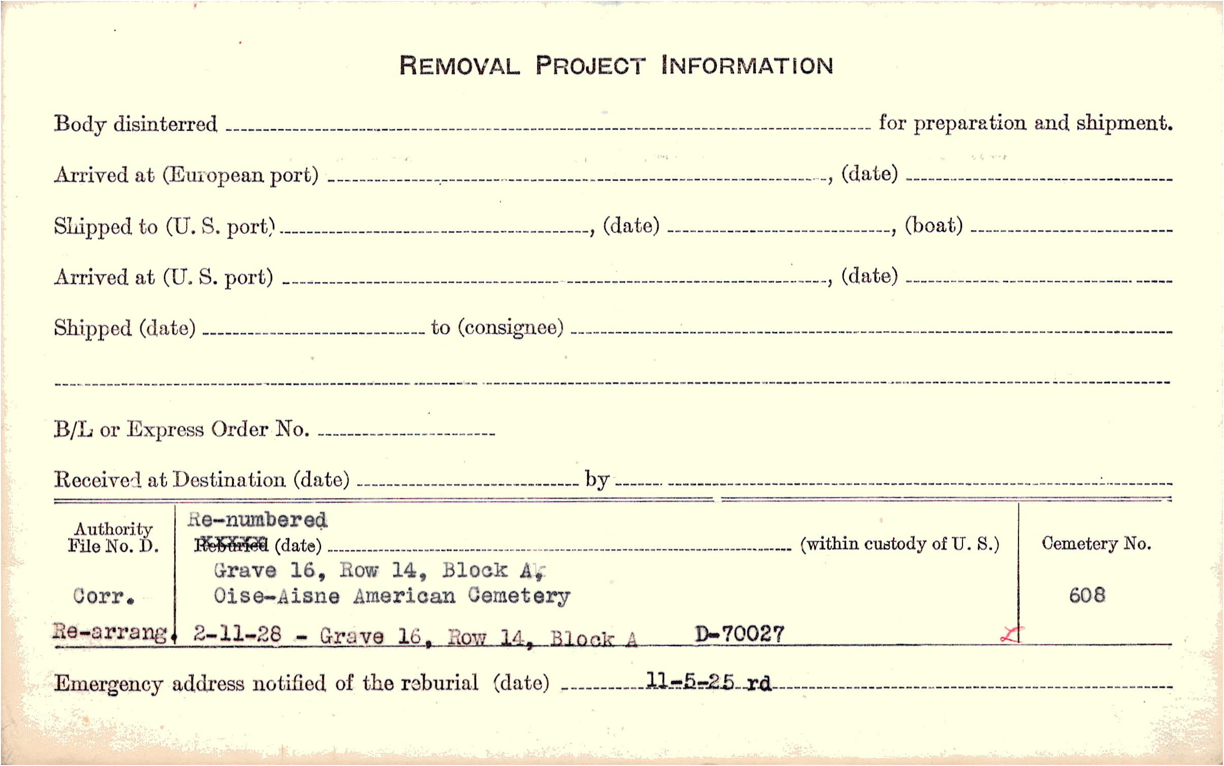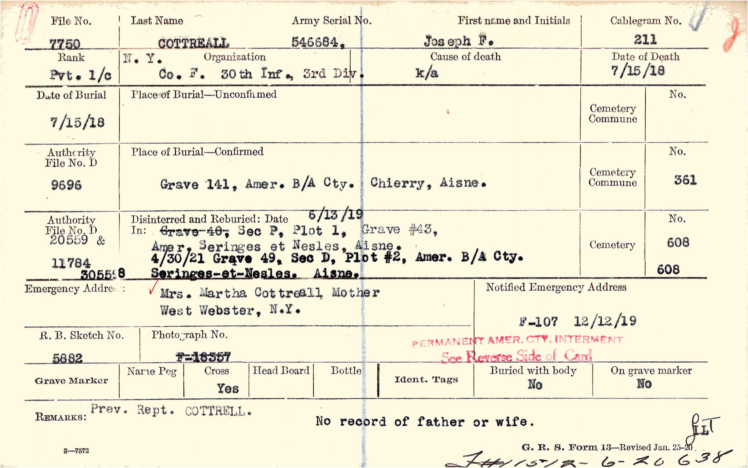 Grave 141, Amer. B/A Cty., Chierry, Aisne.