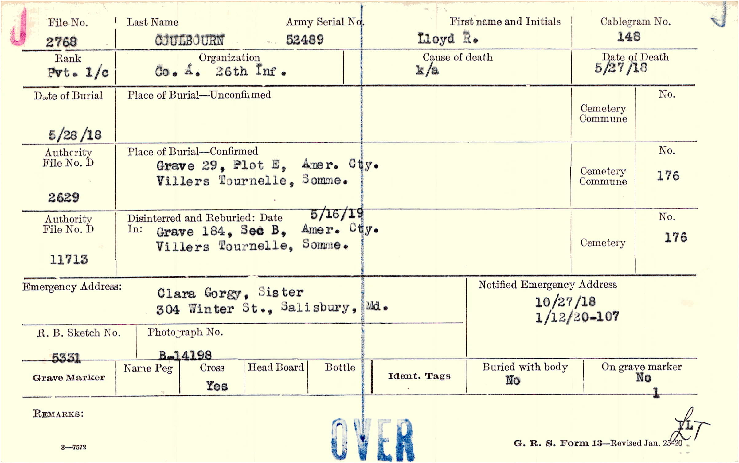 Grave 29, Plot E, Amer. Cty., Villers Tournelle, Somme.