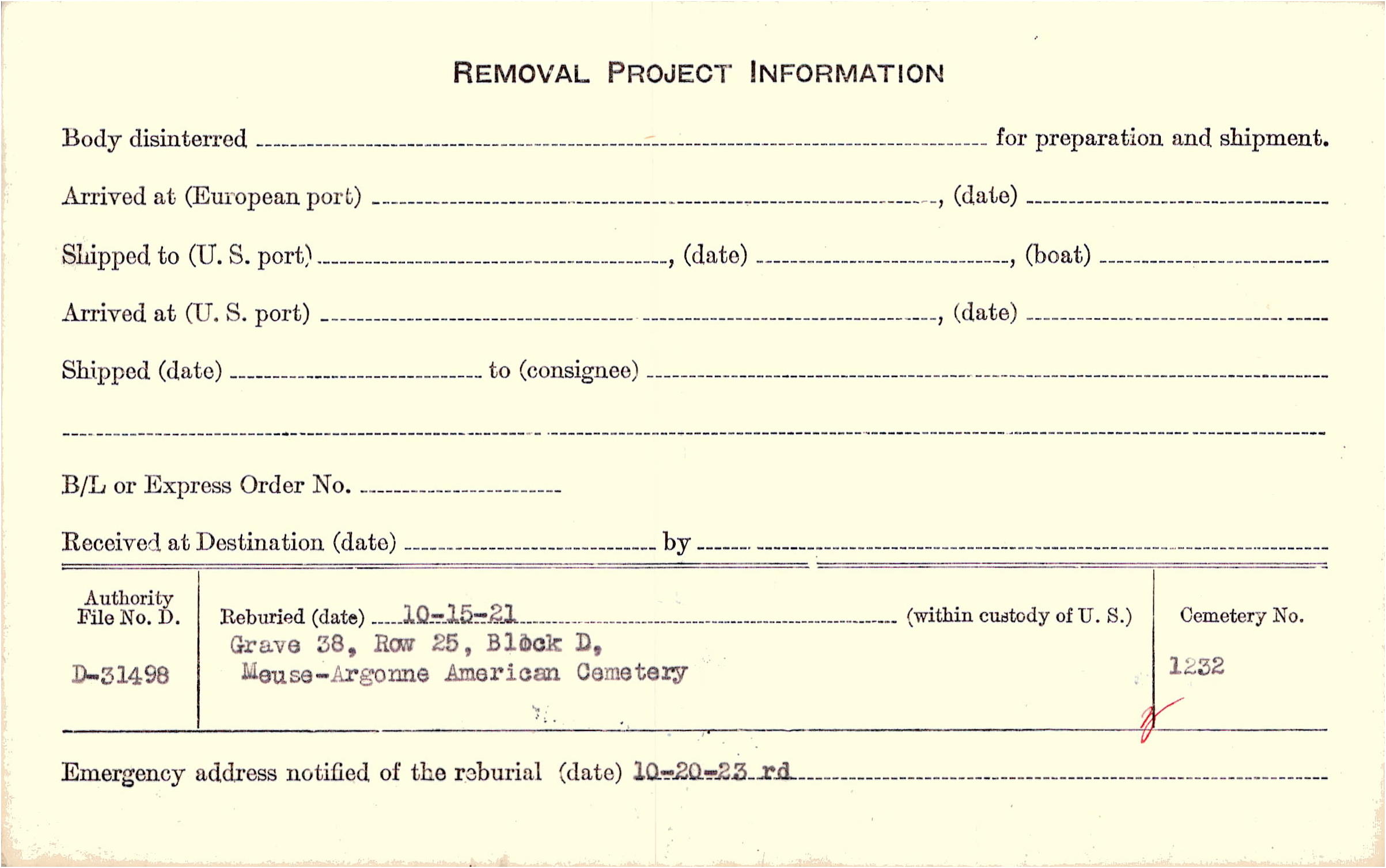| Permanent Burial in Foreign Cemetery |