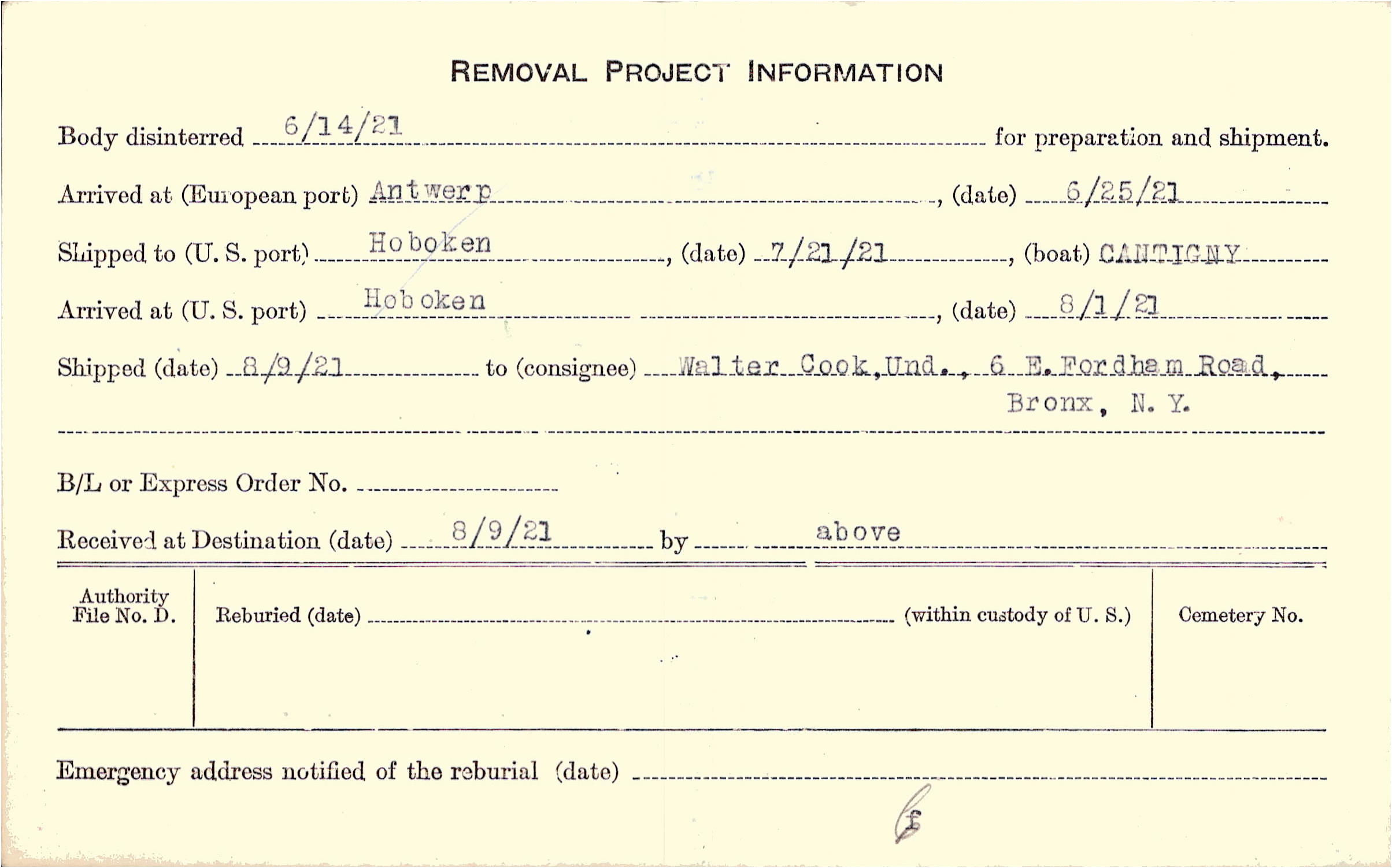 to Walter Cook, Und., 6 E. Fordham Road, Bronx, N.Y.
