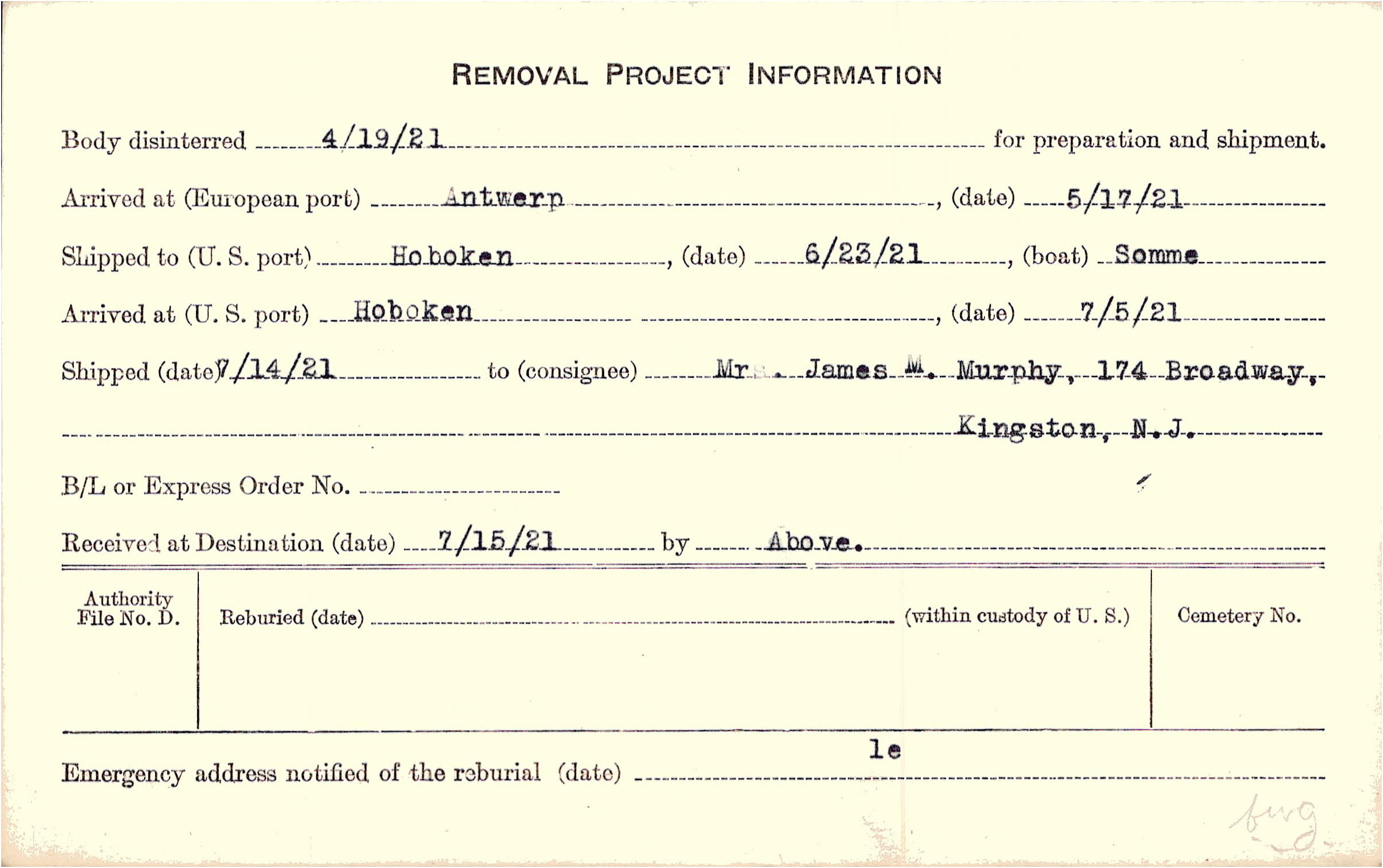 to Mr . James M. Murphy, 174 Broadway, Kingston, N.J.