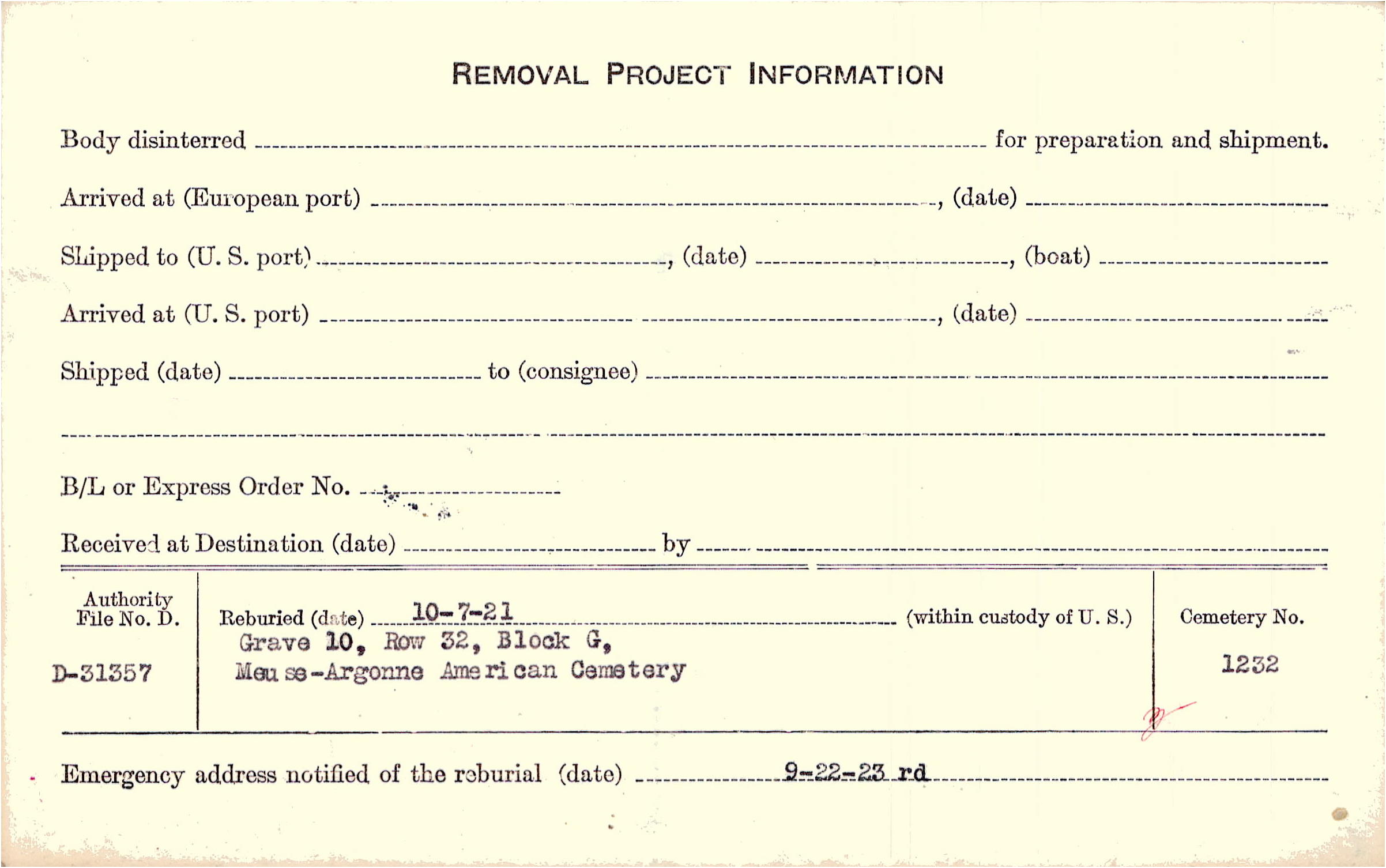 | Permanent Burial in Foreign Cemetery |