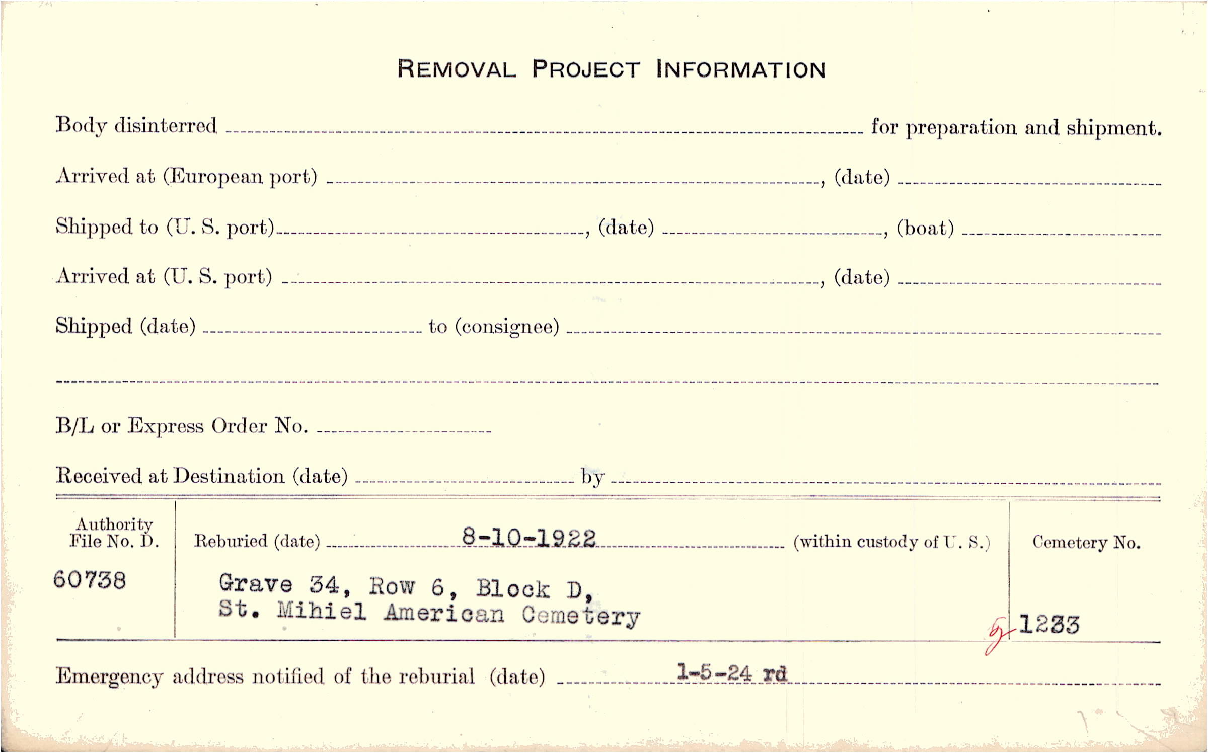 | Permanent Burial in Foreign Cemetery |