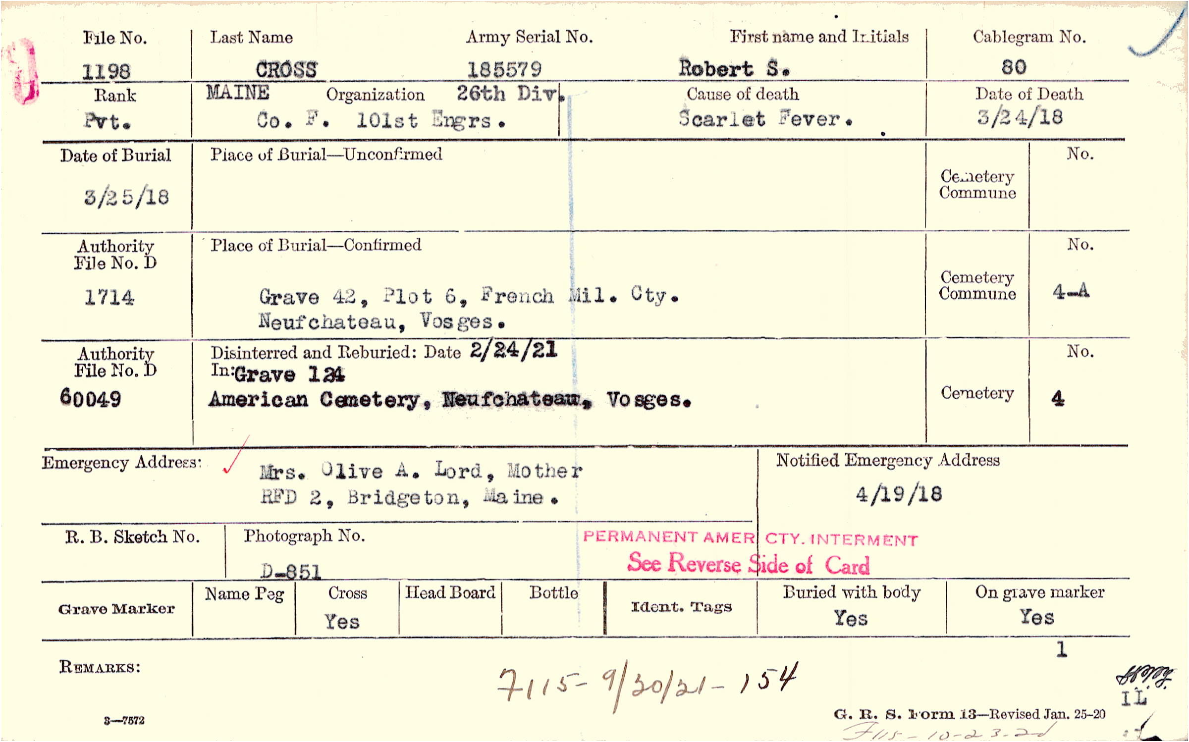 Mrs. Olive A. Lord, Mother, RFD 2, Bridgeton, Maine.