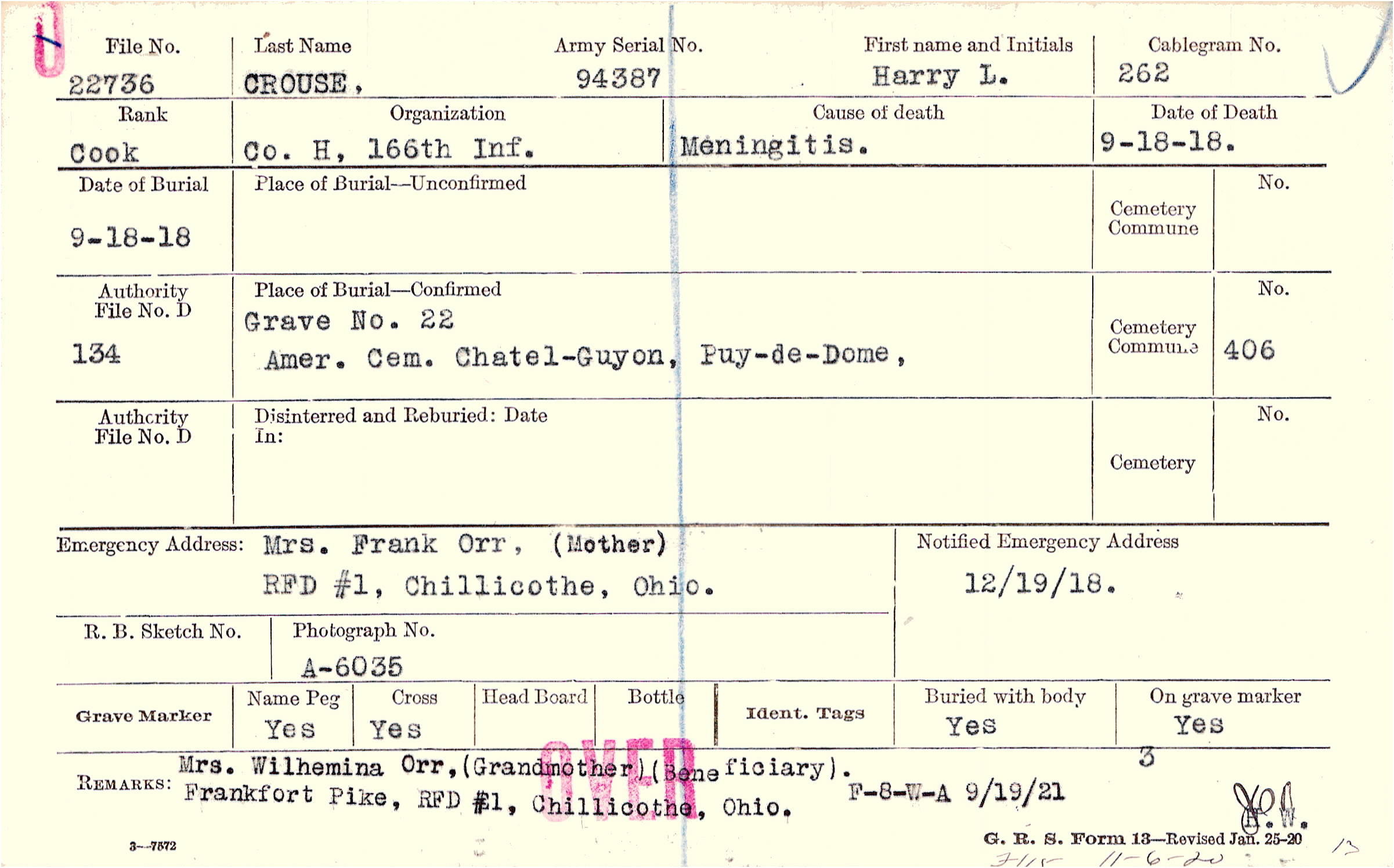 Grave 22, Amer. Cem., Chatel-Guyon, Puy-de-Dome,