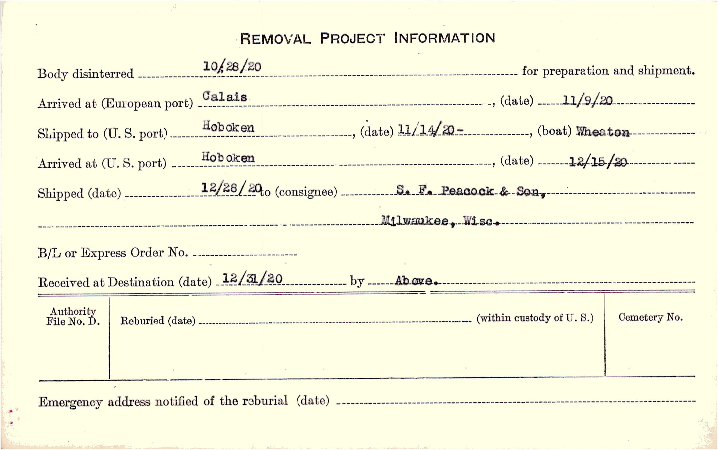 to S. F. Peacock & Son, Milwaukee, Wisc.