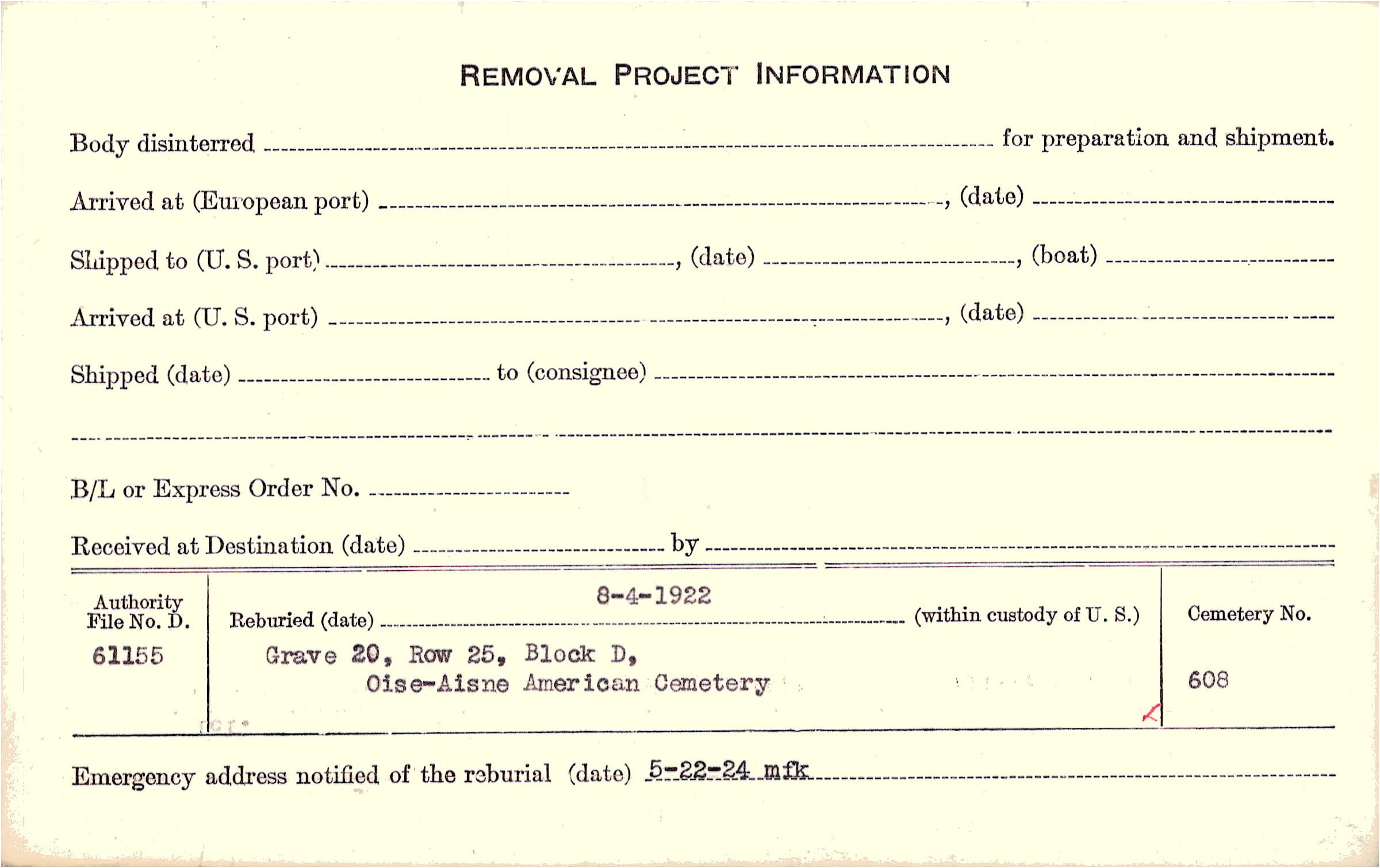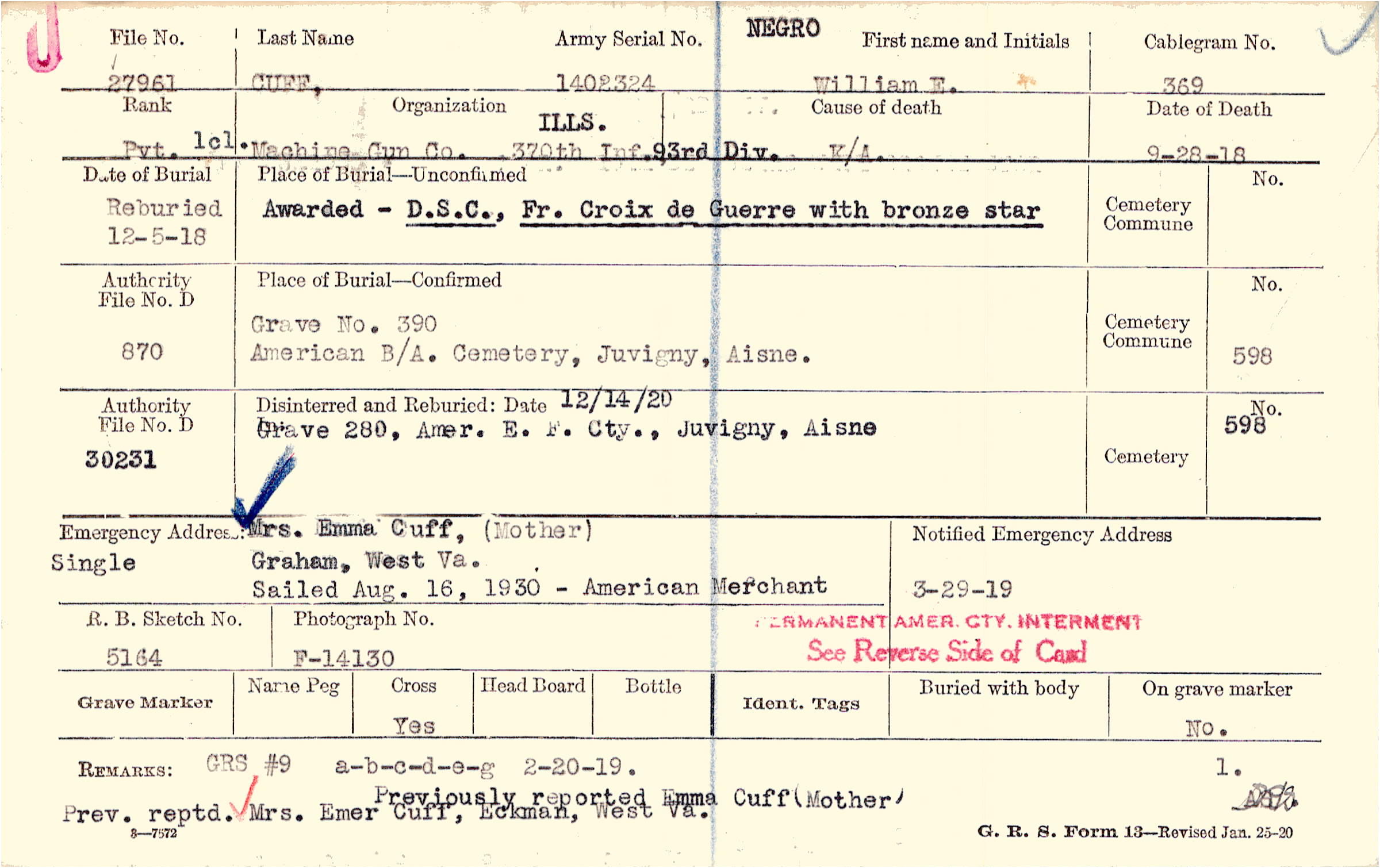 Grave 390, American B/A Cemetery, Juvigny, Aisne.
