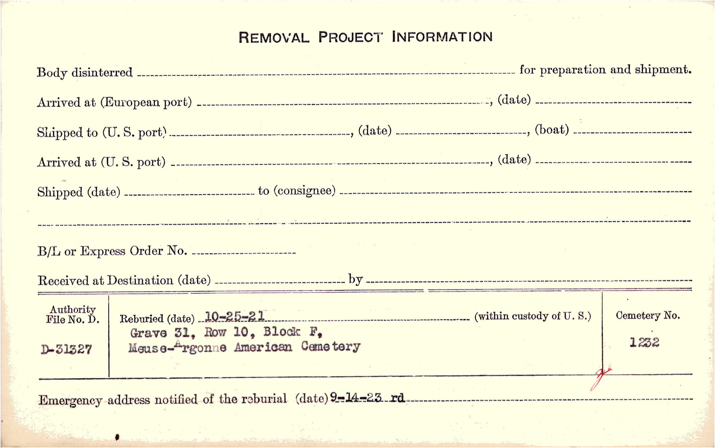 | Permanent Burial in Foreign Cemetery |