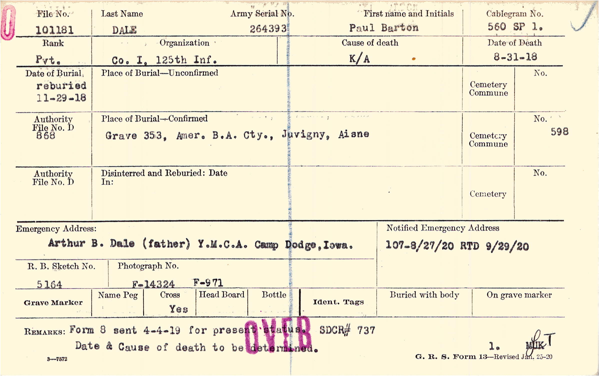 Grave 353, Amer. B/A Cty., Juvigny, Aisne