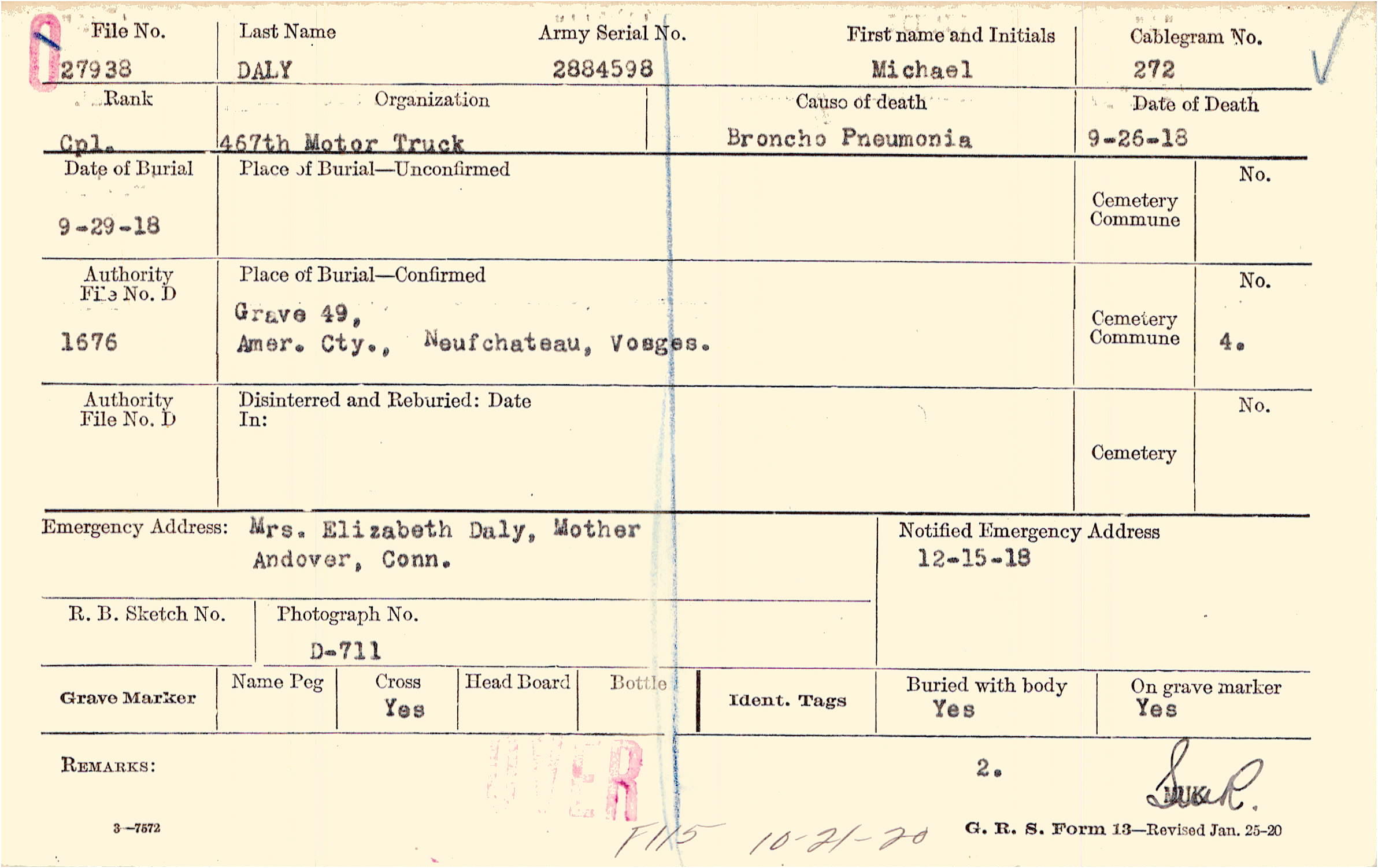 Grave 49, Amer. Cty., Neufchateau, Vosges.