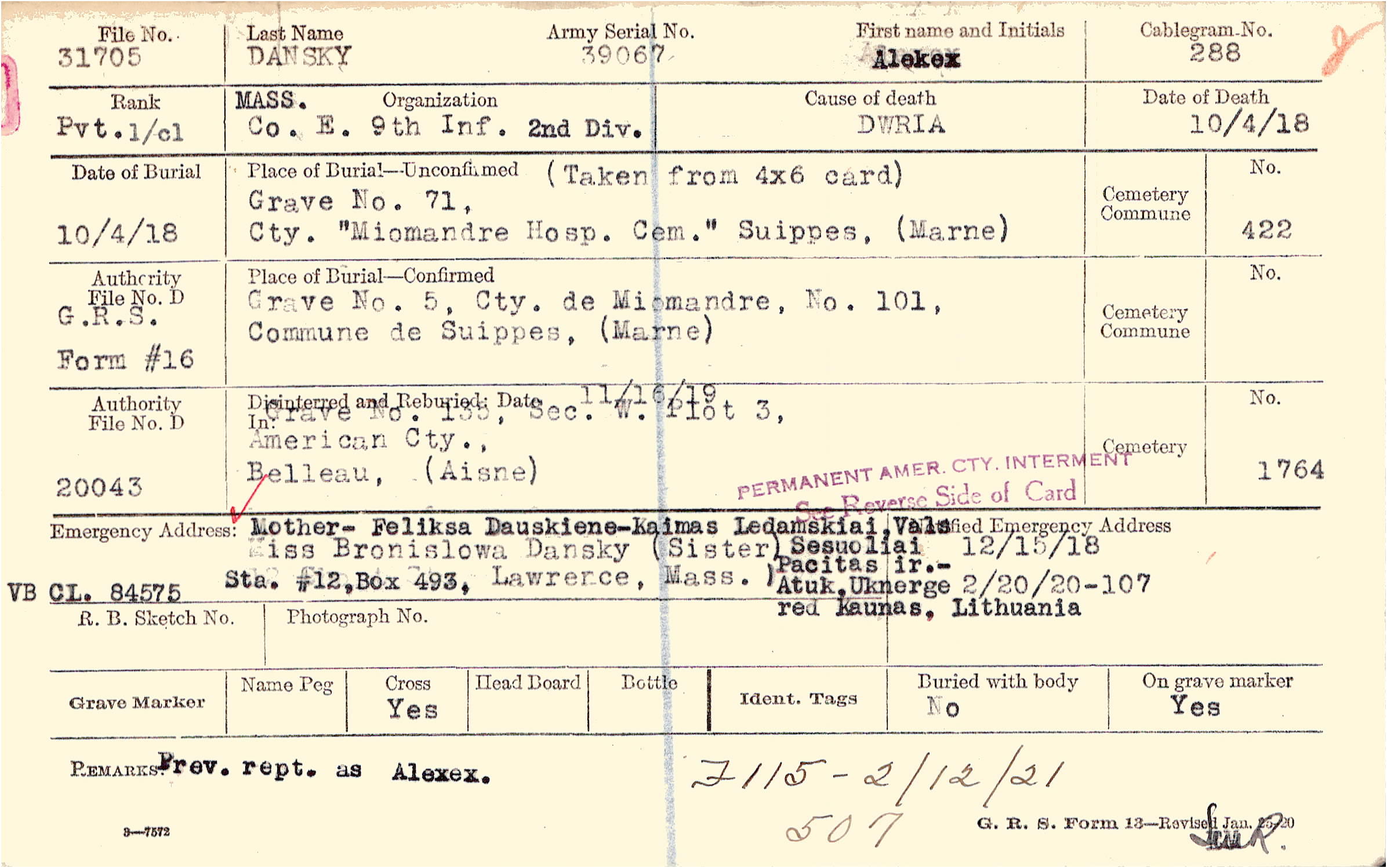 Miss Bronislowa Dansky (Sister), Sta. #12, Box 493, Lawrence, Mass., Mother- Feliksa Dauskiene-Kaimas Ledamskiai, Vals Sesuoliai Pacitas ir.- Atuk.Uknerge red Kaunas, Lithuania VB CL. 84575