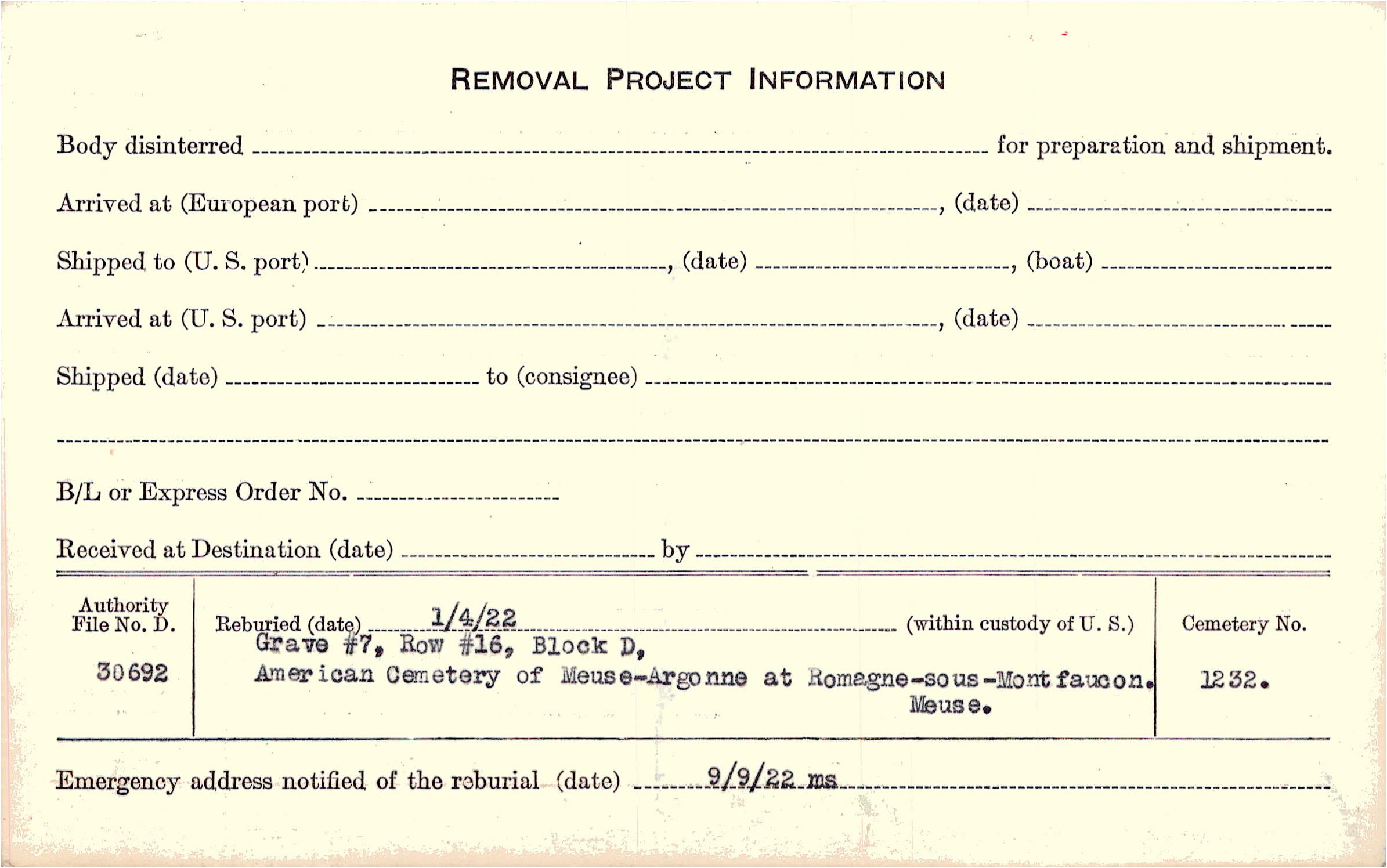 | Permanent Burial in Foreign Cemetery |
