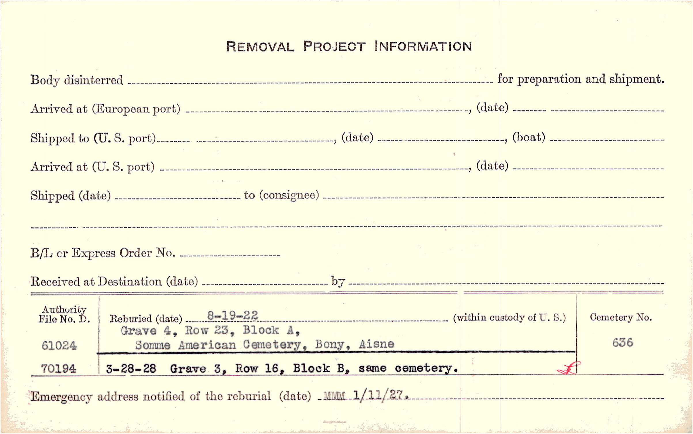 Prior Burial in Foreign Cemetery |