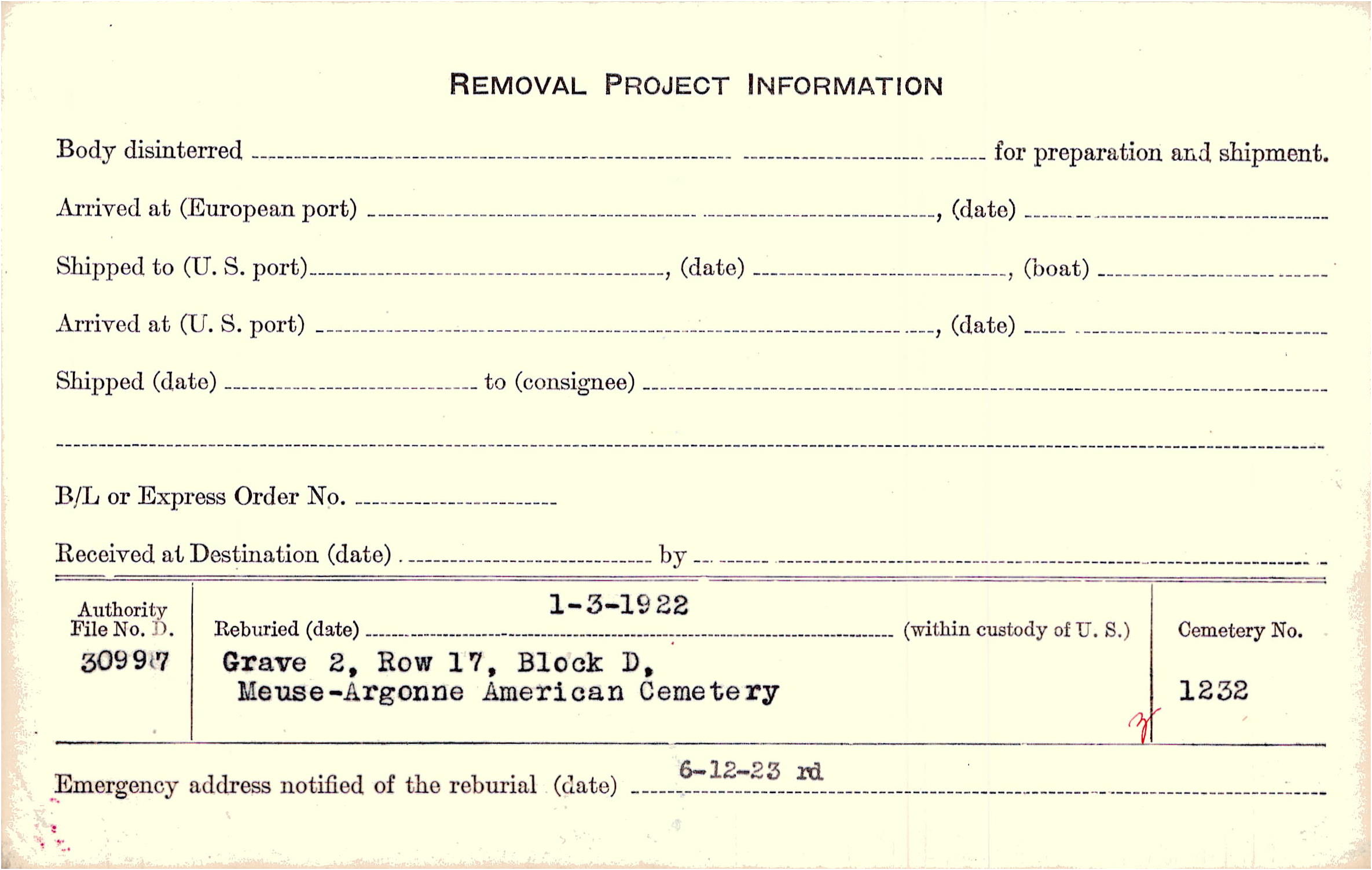 Grave 37, Amer. B/A, Epinonville, Meuse.