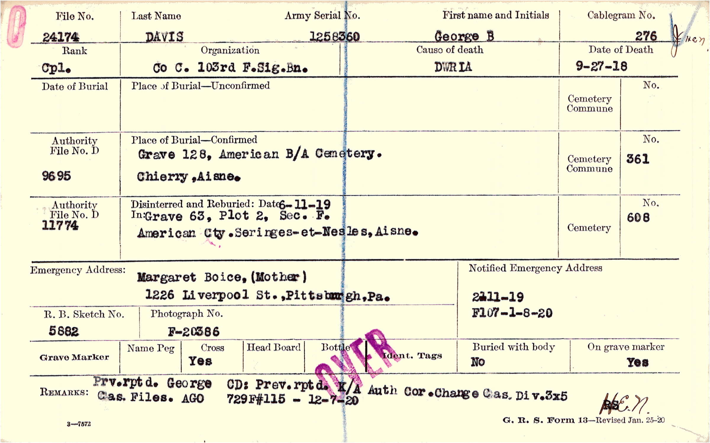 Prv rptd. George CD: Prev. reptd. K/A Auth Cor. Change Cas. Div. 3x5 Cas.Files AGO 729., F#115 - 12-7-20