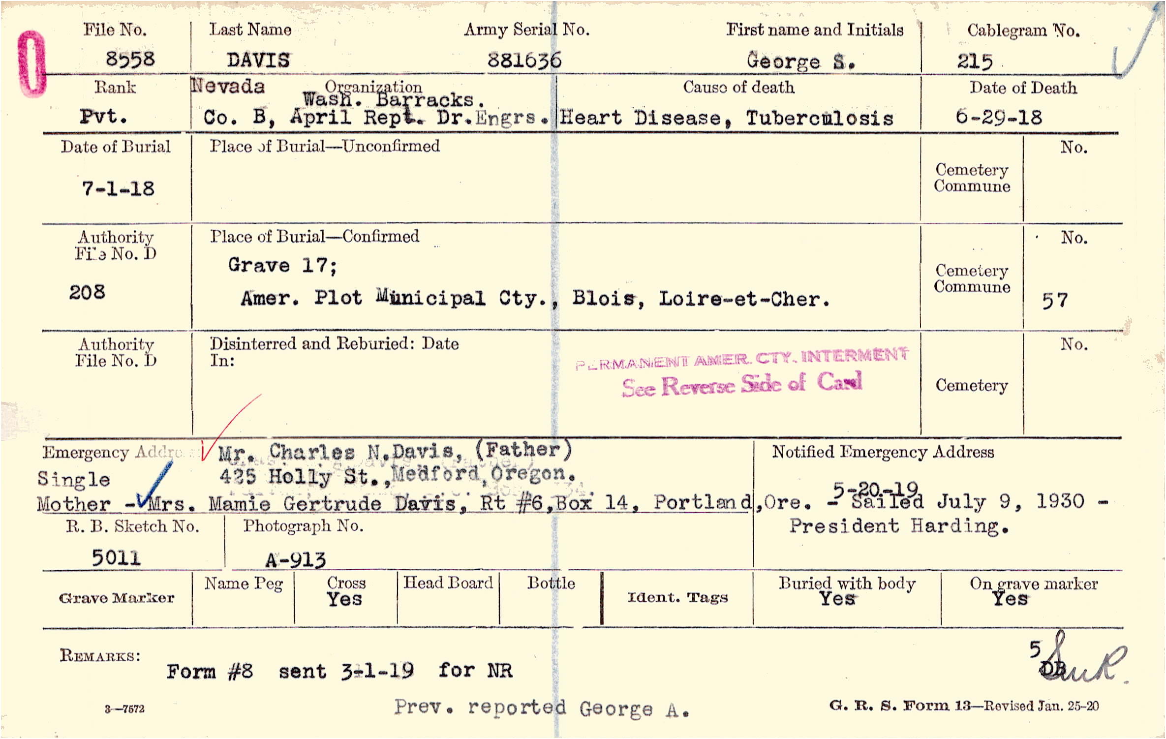 Mr. Charles N. Davis, (Father), 425 Holly St., Medford, Oregon., Single Mother - Mrs. Mamie Gertrude Davis, Rt #6,Box 14, Portland,Ore. - Sailed July 9, 1930 - President Harding.