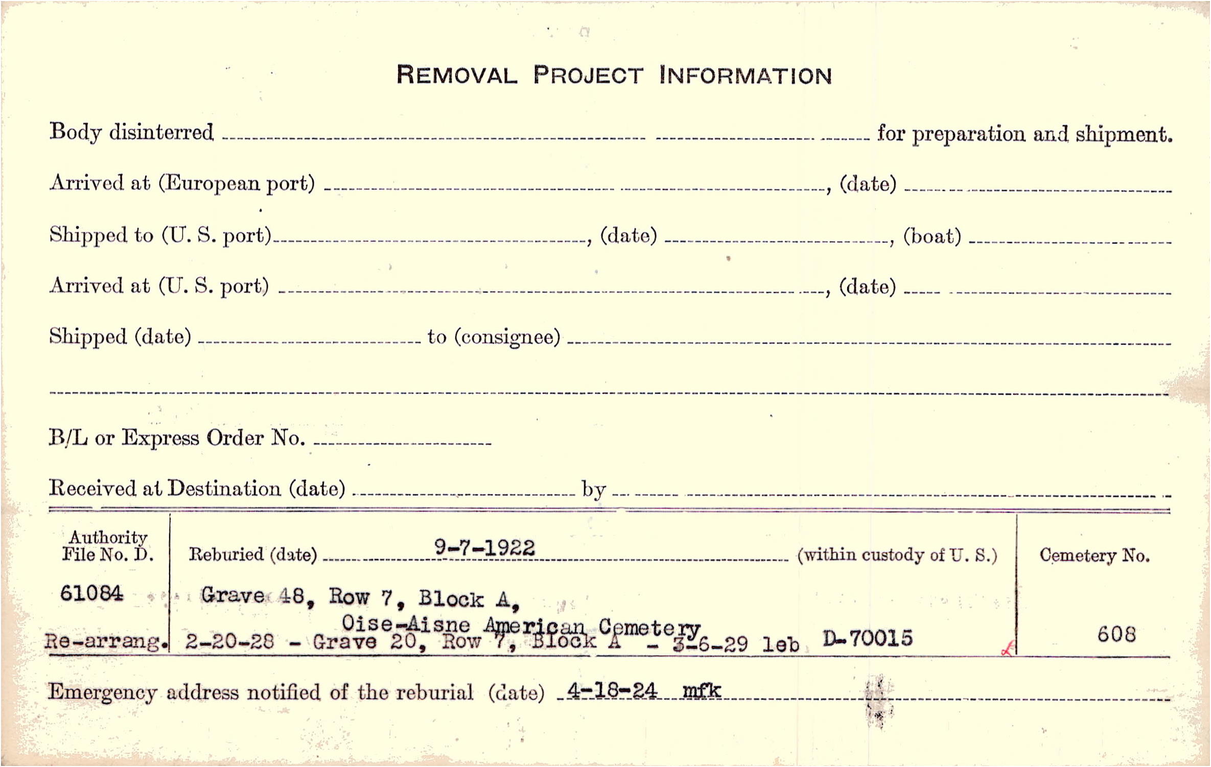 Prior Burial in Foreign Cemetery |