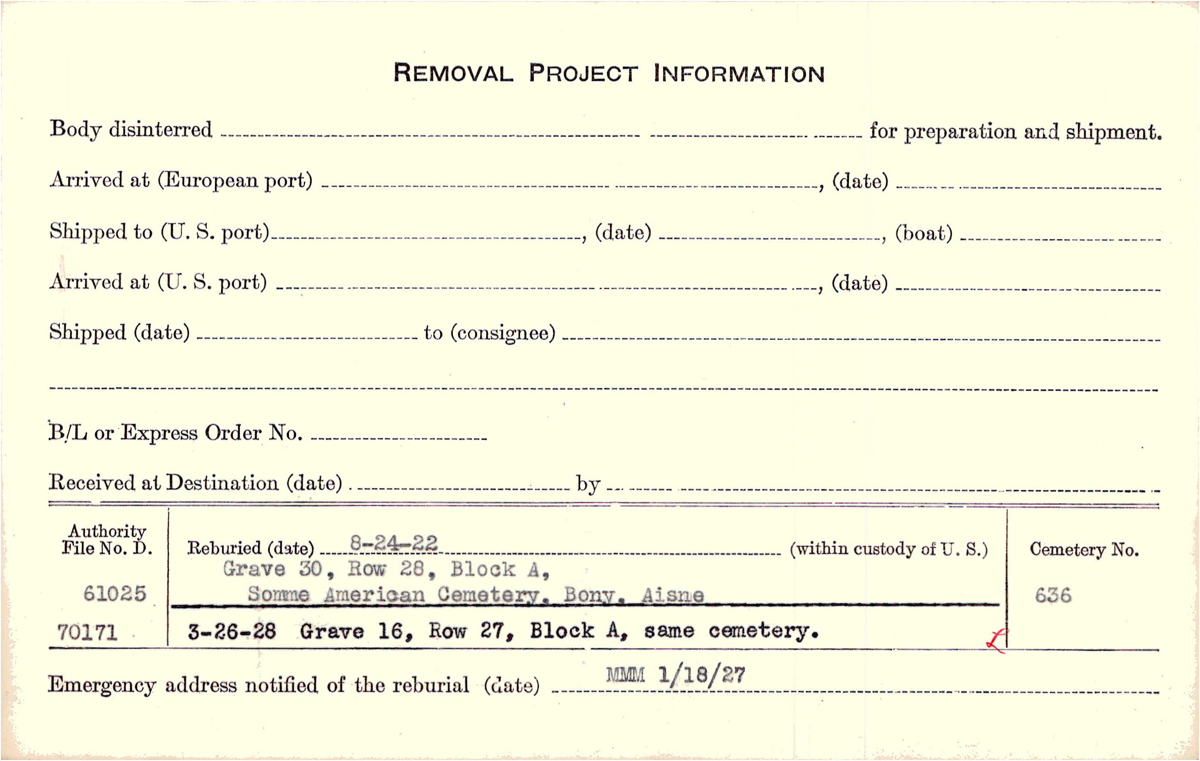 Prior Burial in Foreign Cemetery |