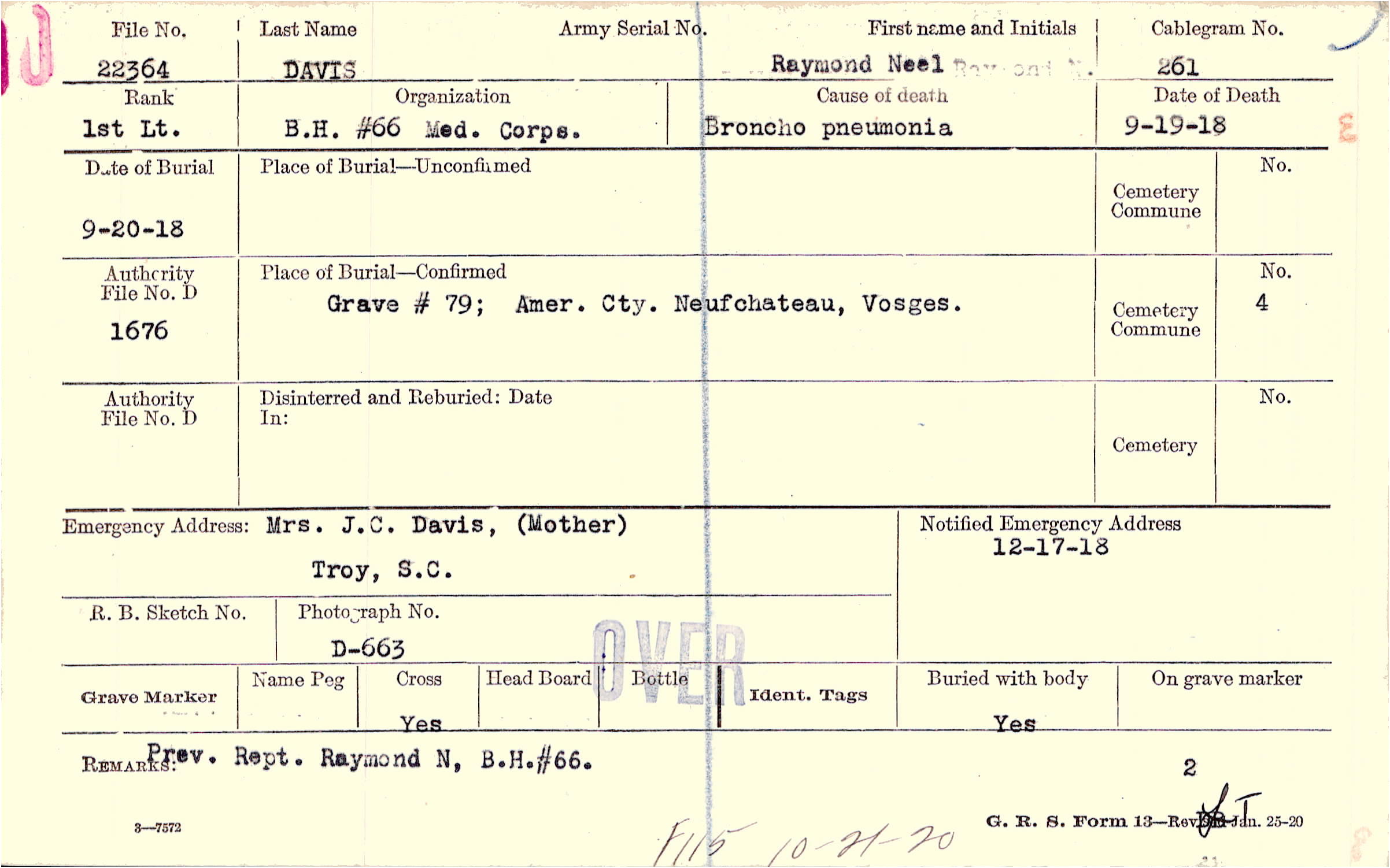 Grave # 79, Amer. Cty., Neufchateau, Vosges.