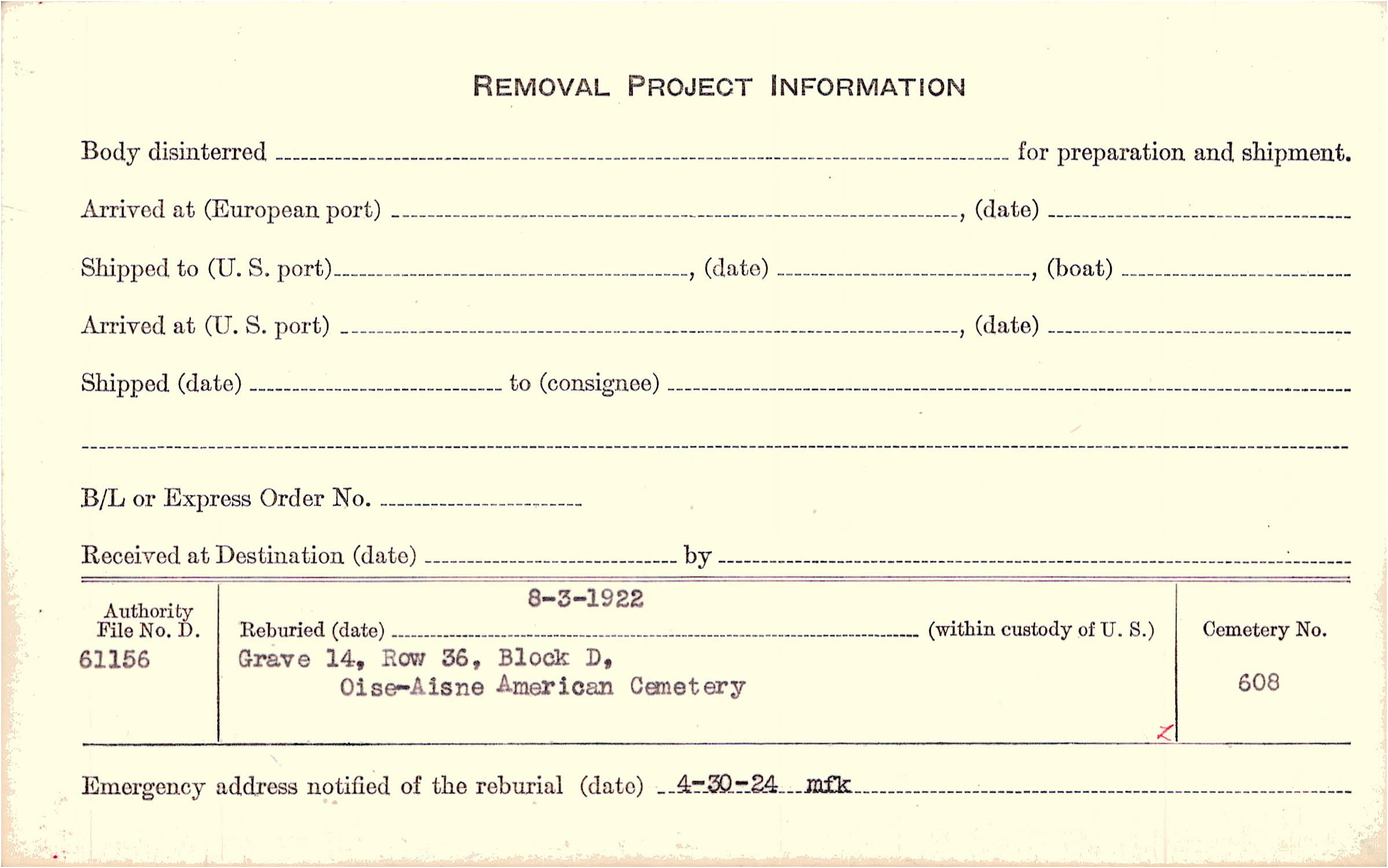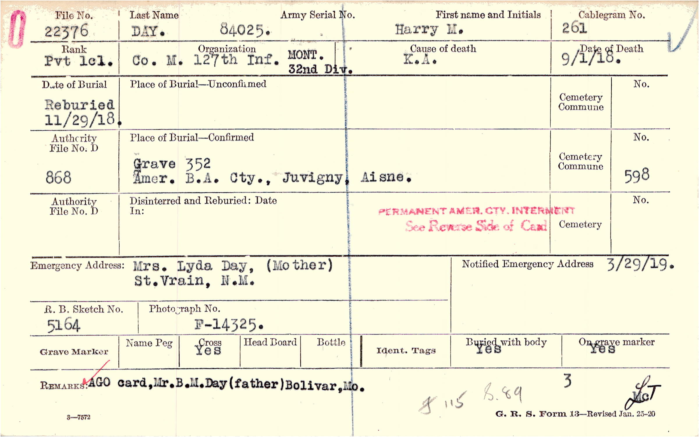 Grave 352, Amer. B/A Cty., Juvigny, Aisne.
