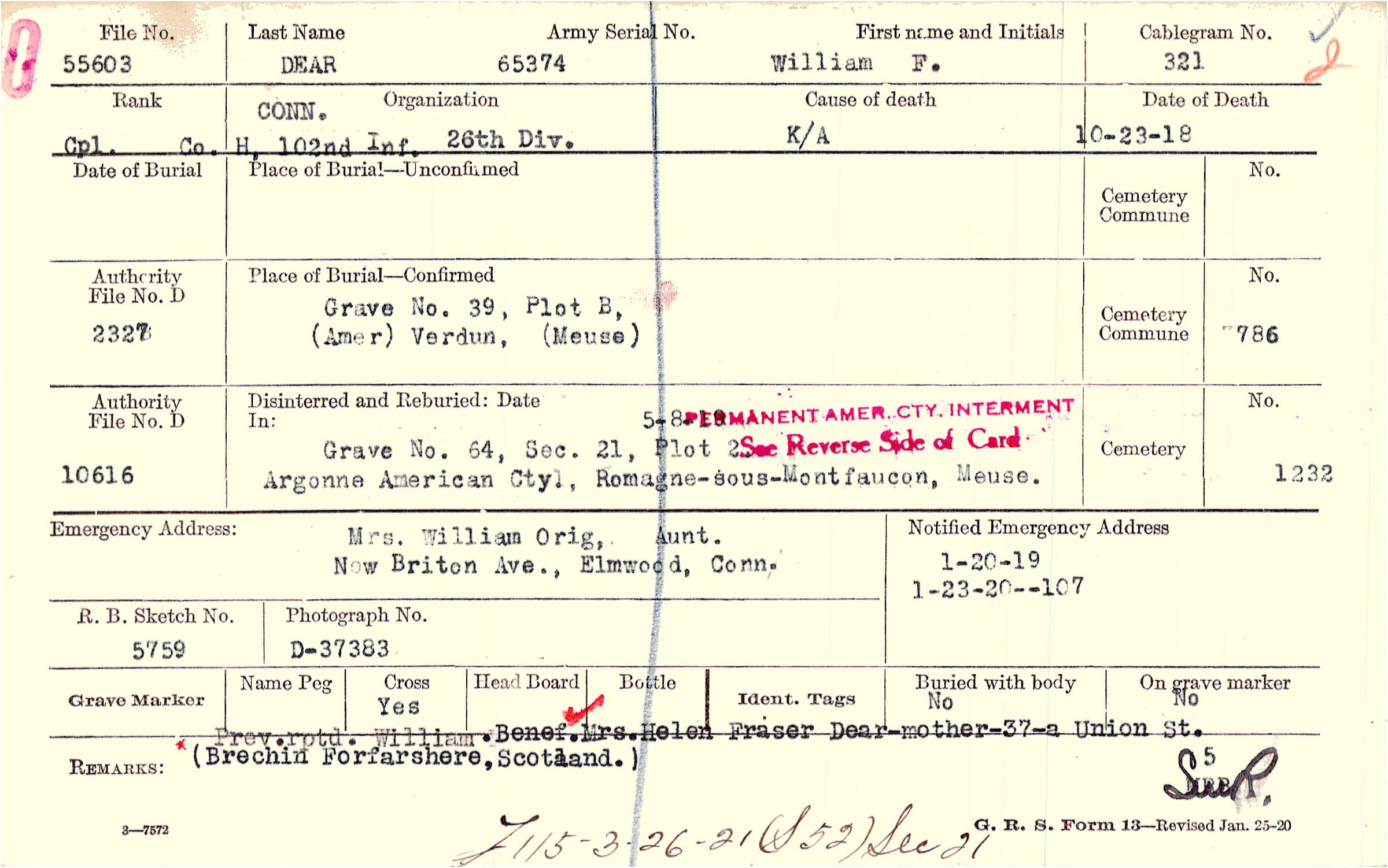 Grave 39, Plot B, Amer., Verdun, Meuse
