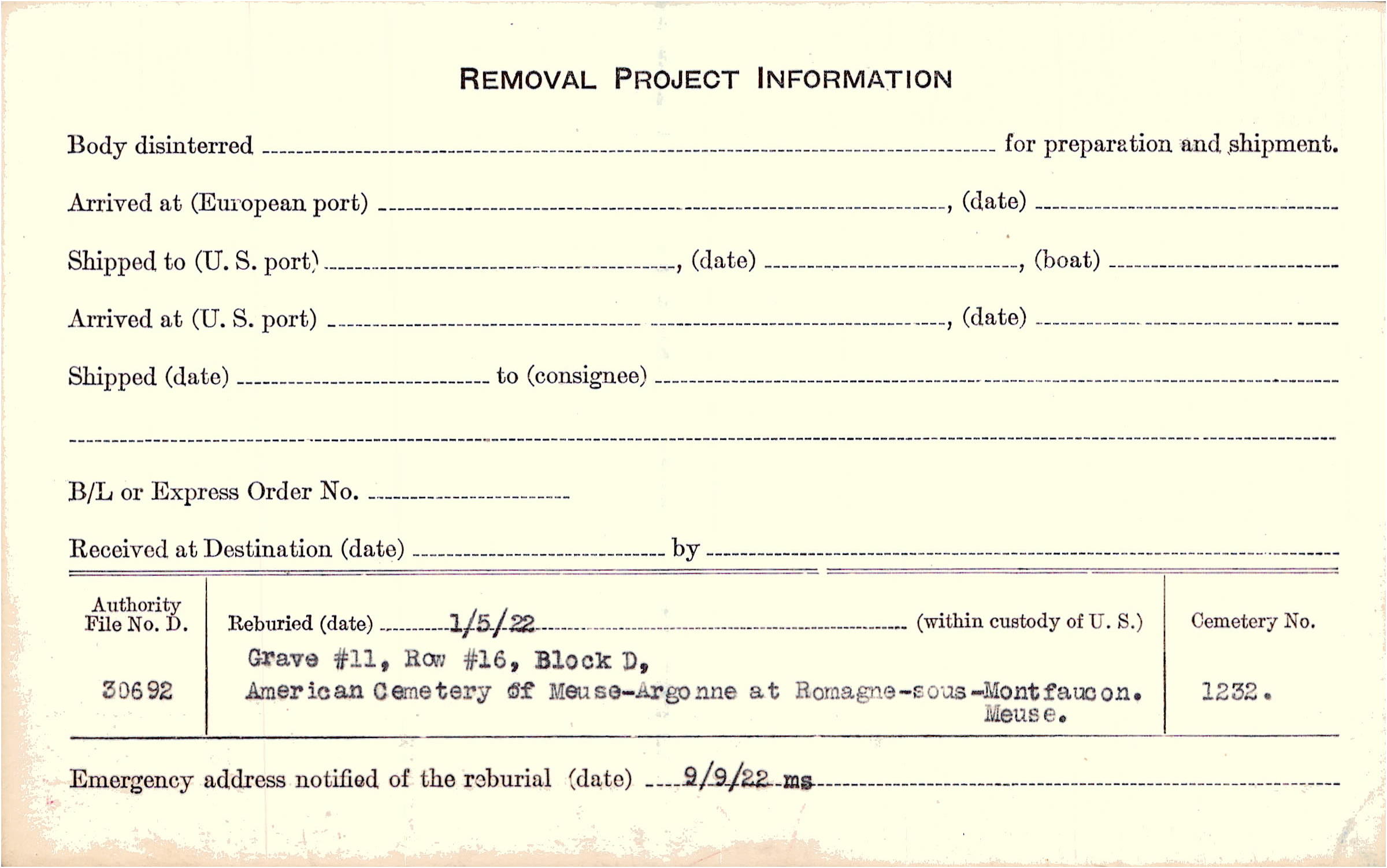 | Permanent Burial in Foreign Cemetery |