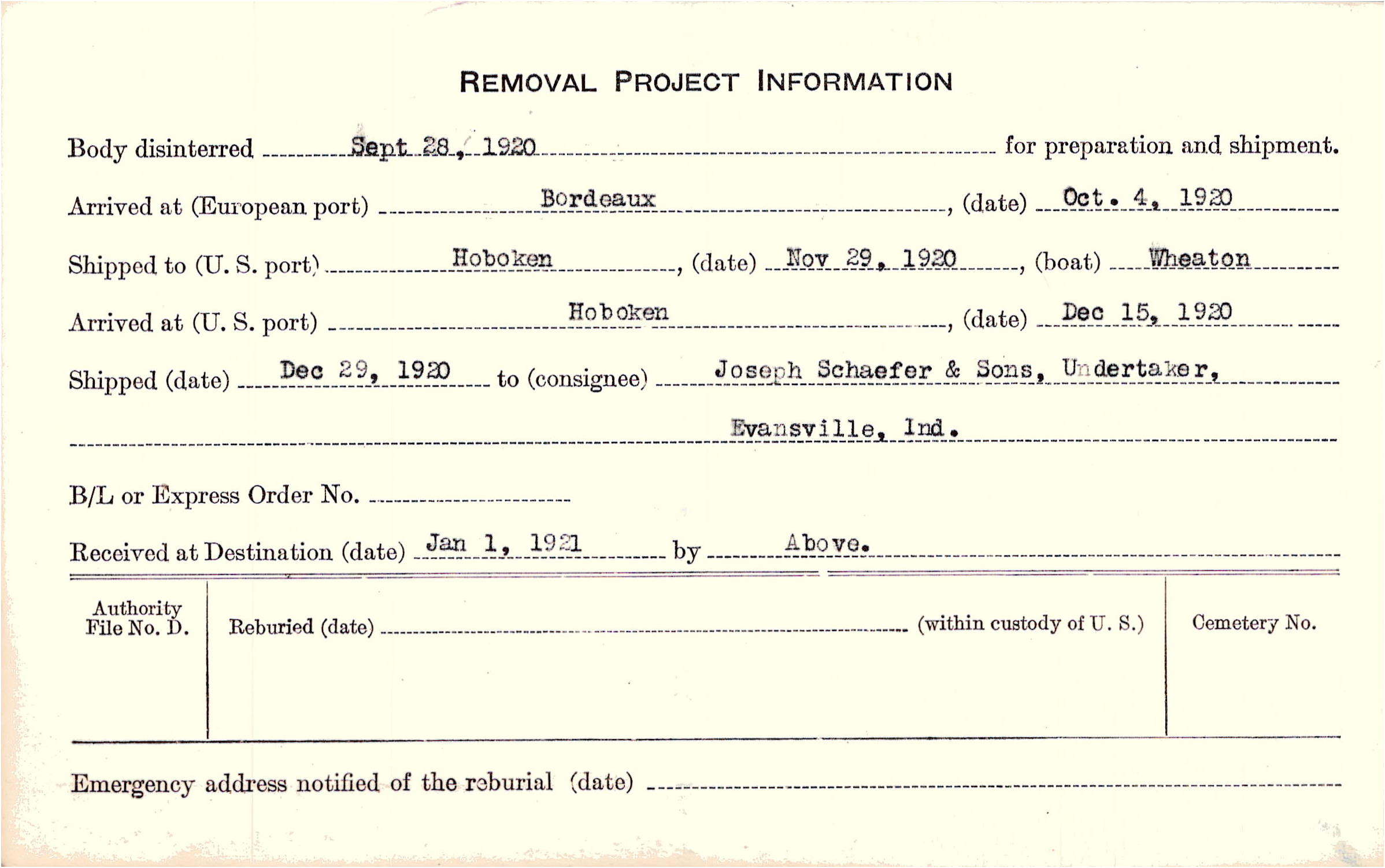 to Joseph Schaefer & Sons, Undertaker, Evansville, Ind.