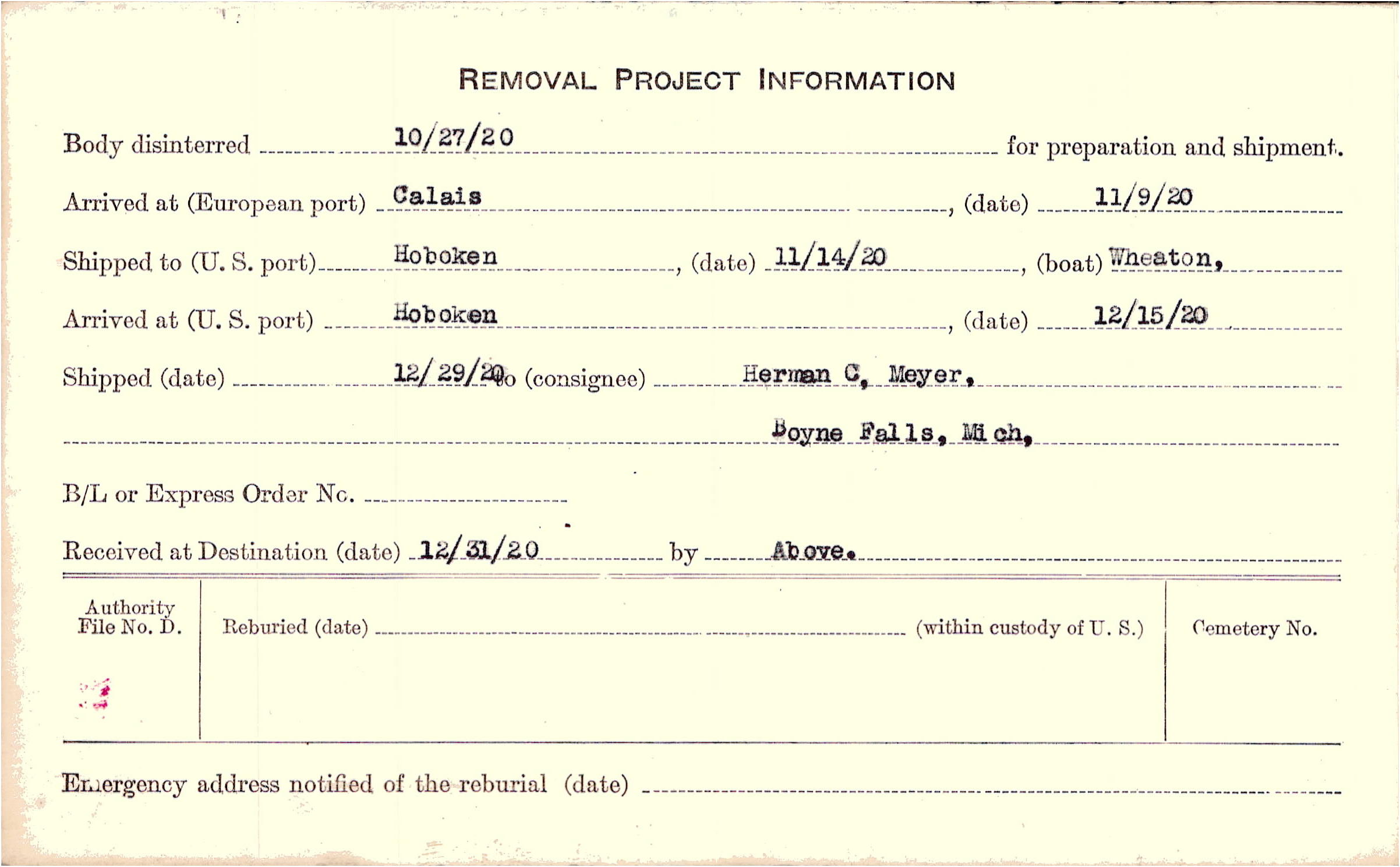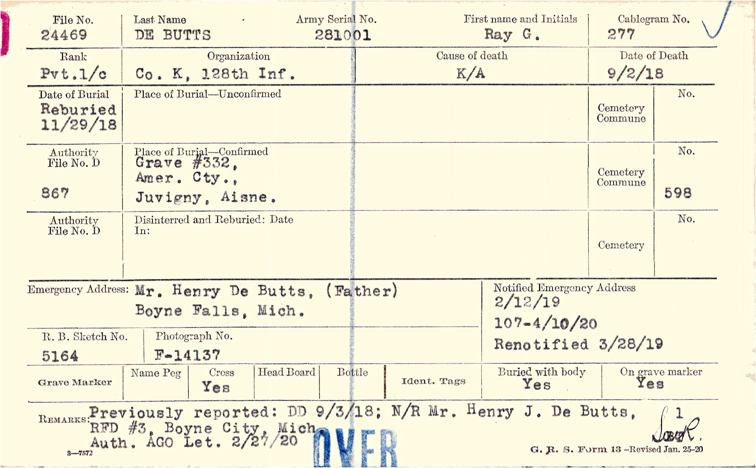 Previously reported: DD 9/3/18; N/R Mr.Henry J. De Butts, RFD #3, Boyne City, Mich. Auth AGO Let. 2/27/20