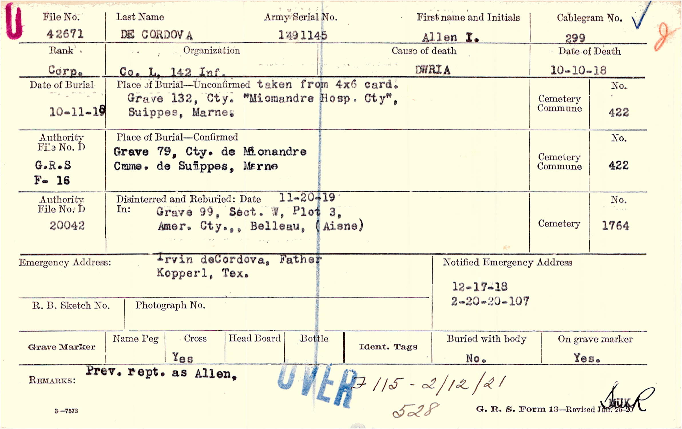 Grave 132, Cty. "Miomandre Hosp. City", Suippes, Marne.