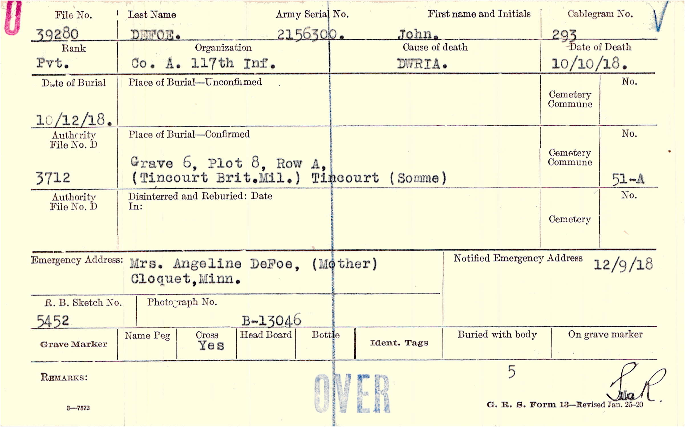 Mrs. Angeline DeFoe, (Mother), Cloquet, Minn.