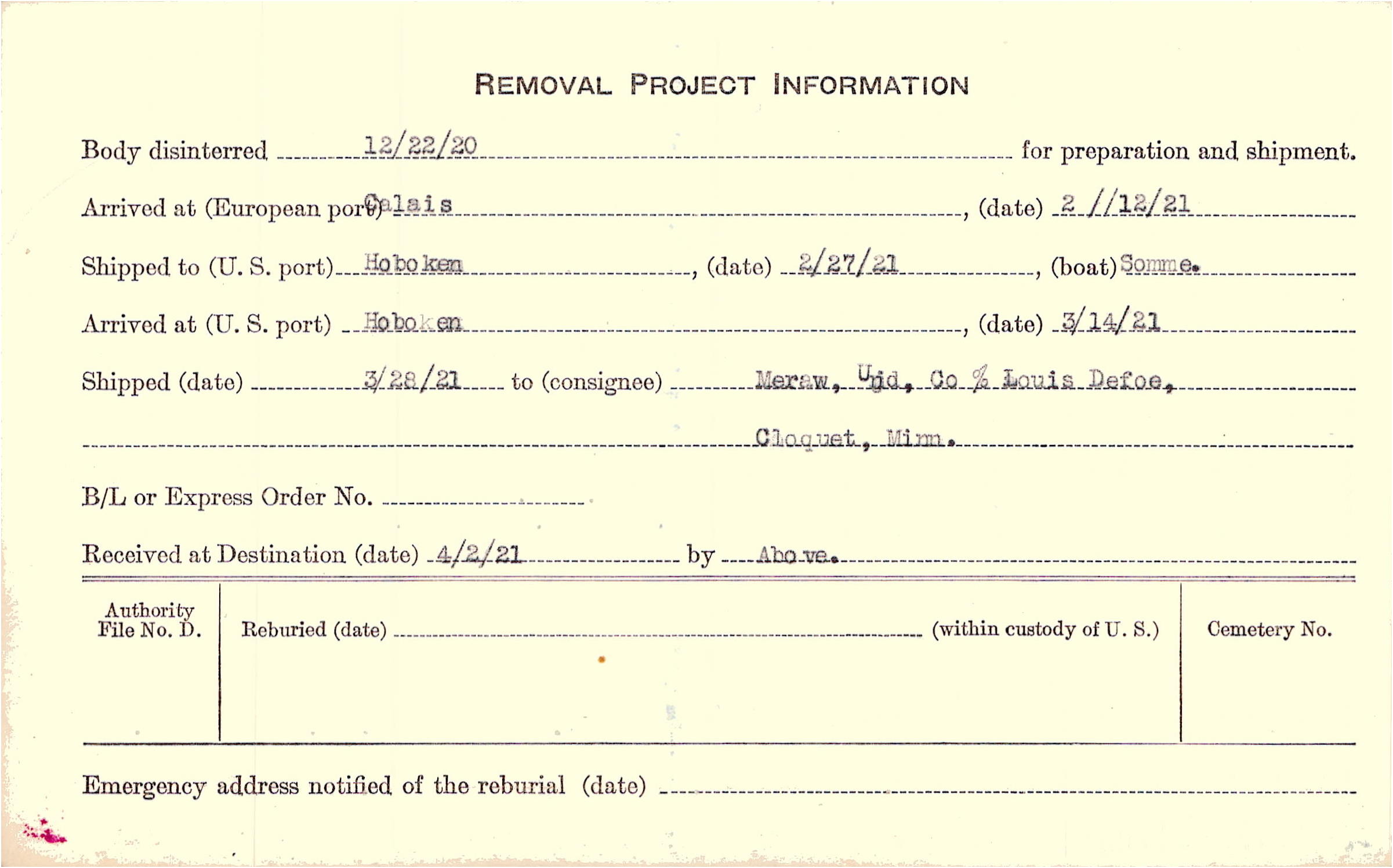 to Meraw, Und. Co % Louis Defoe, Cloquet, Minn.