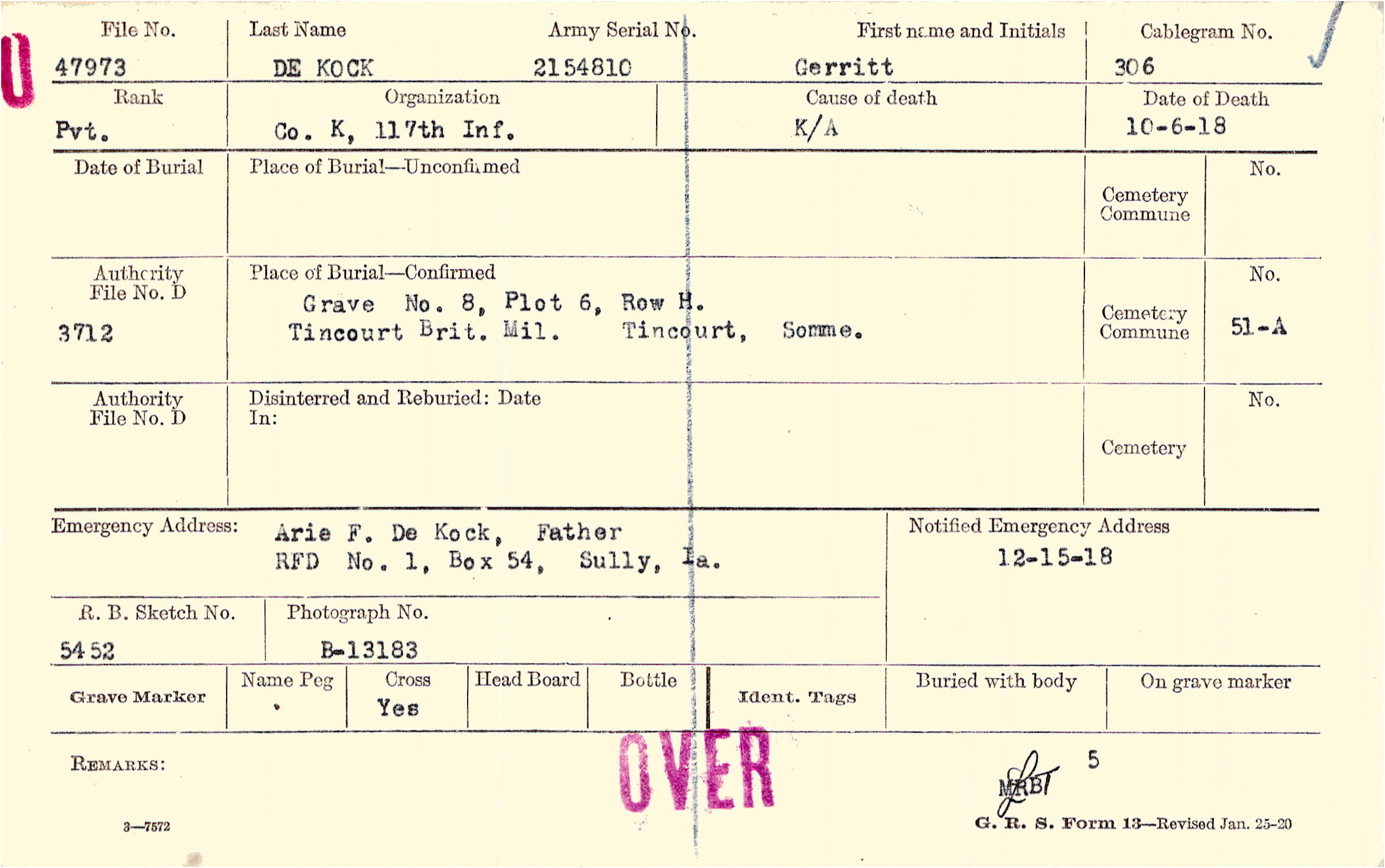 Arie F. De Kock, Father, RFD No. 1, Box 54, Sully, Ia.