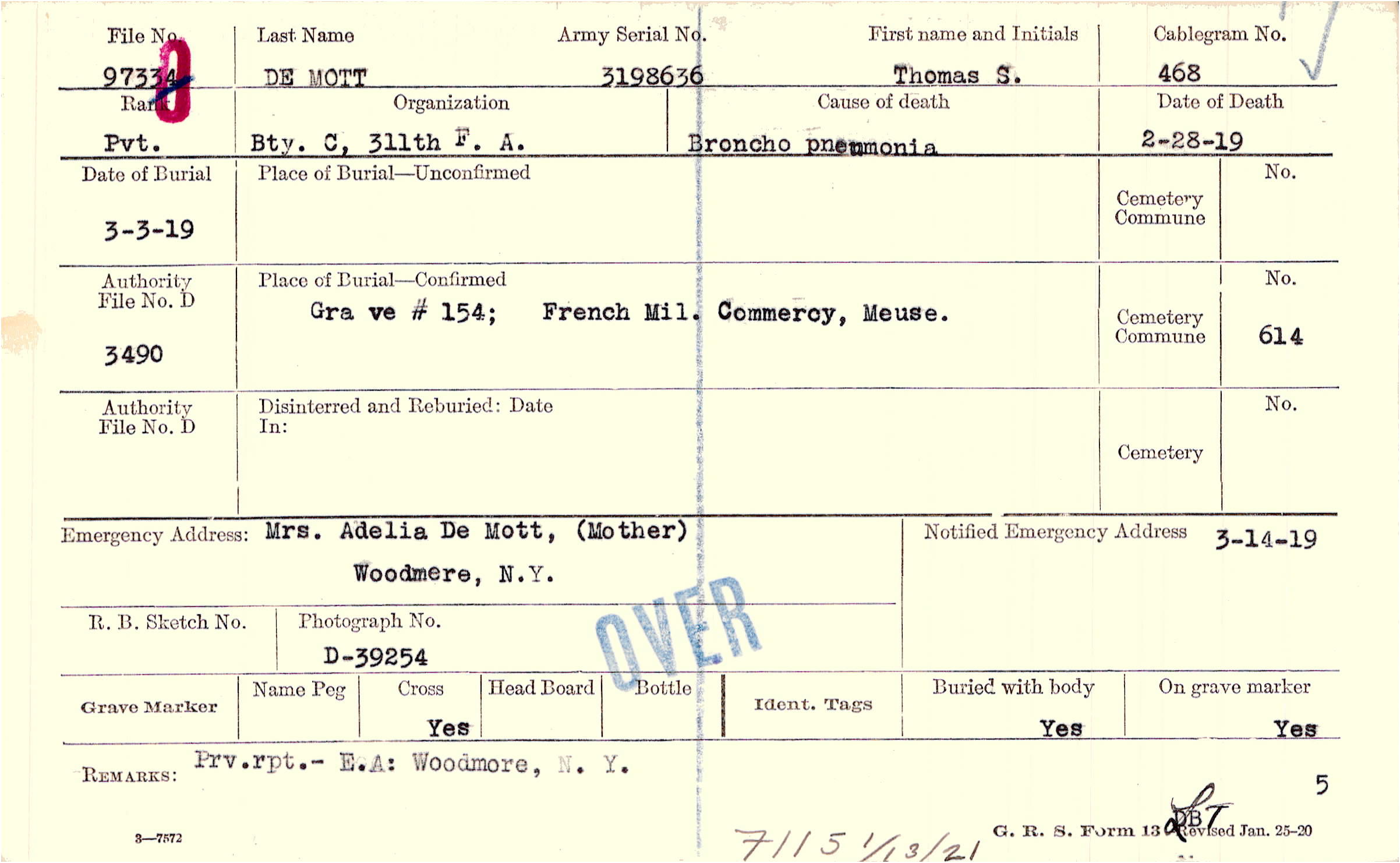 Grave #154, French Mil., Commercy, Meuse.