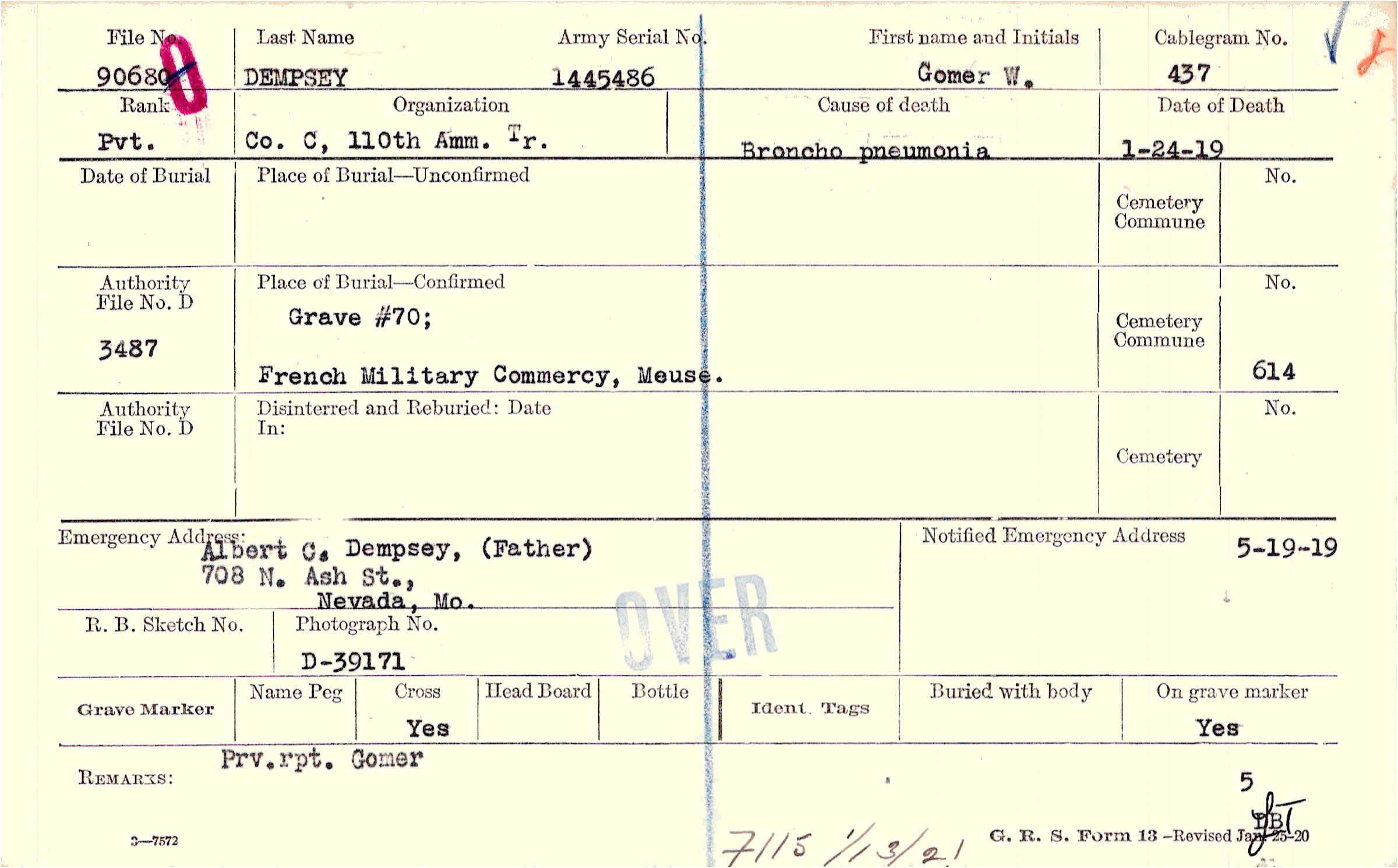 Grave #70, French Military Commercy, Meuse