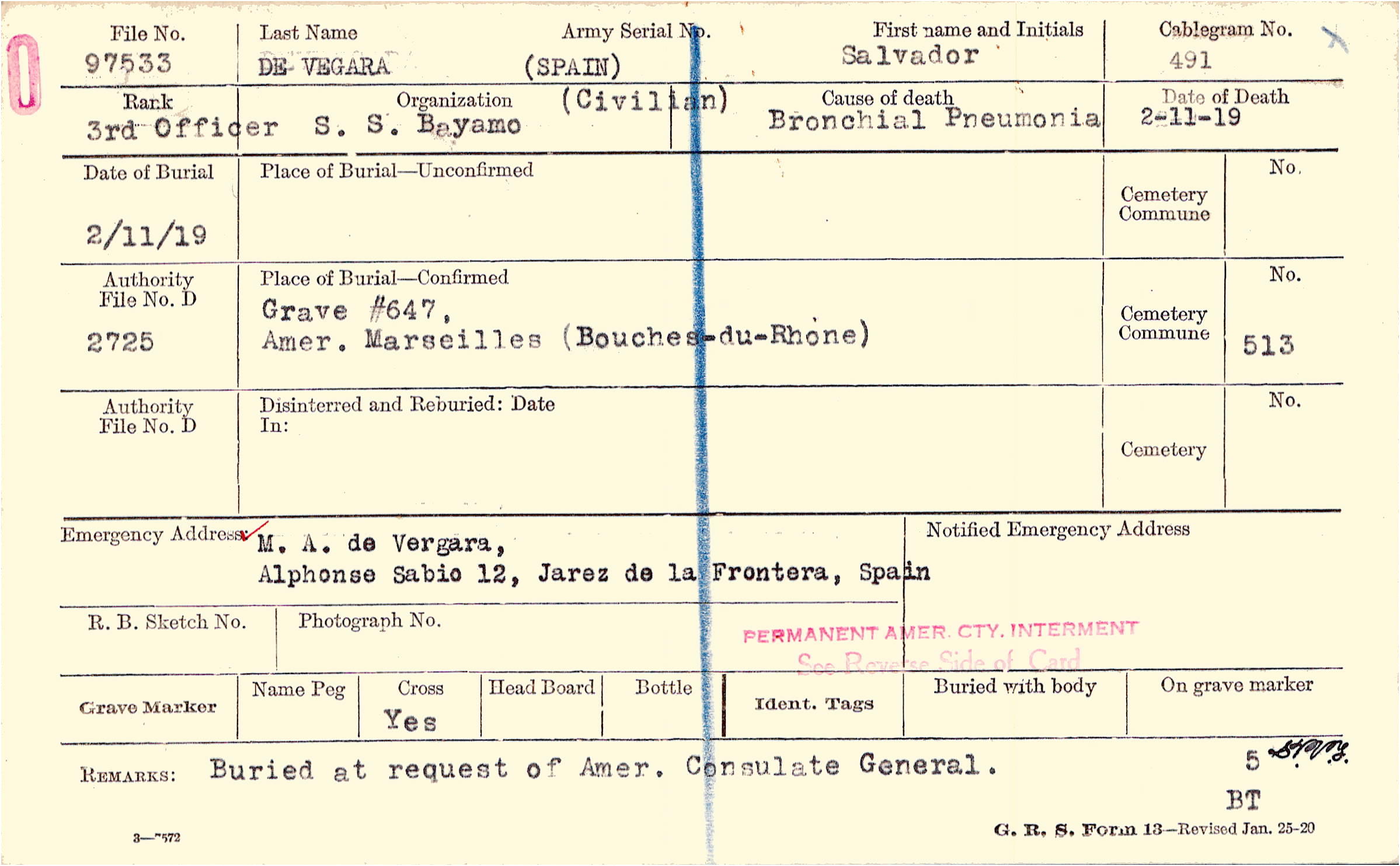 Grave #647, Amer., Marseilles, Bouches-du-Rhone