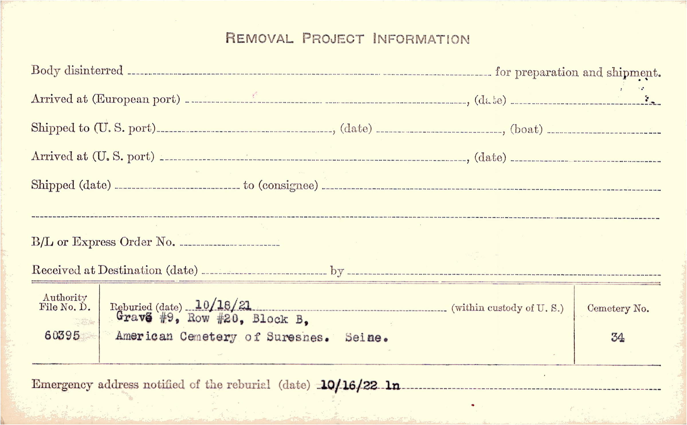 | Permanent Burial in Foreign Cemetery |
