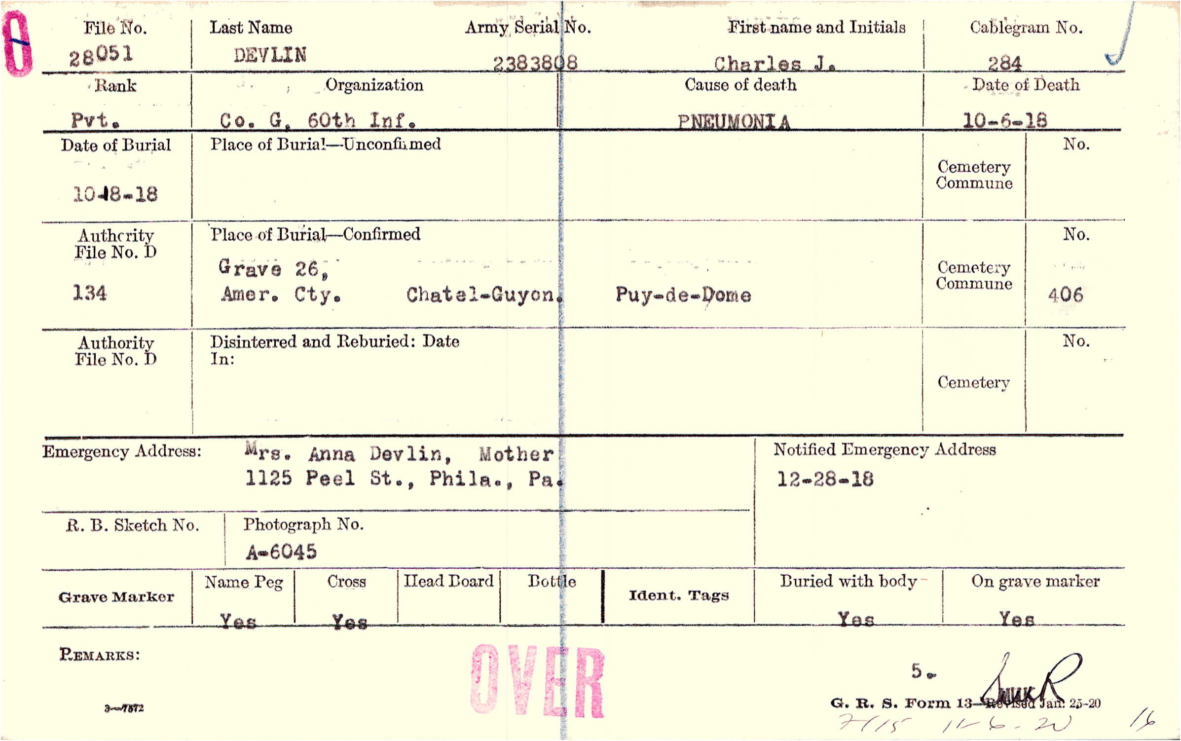 Grave 26, Amer. Cty., Chatal-Guyon, Puy-de-Dome