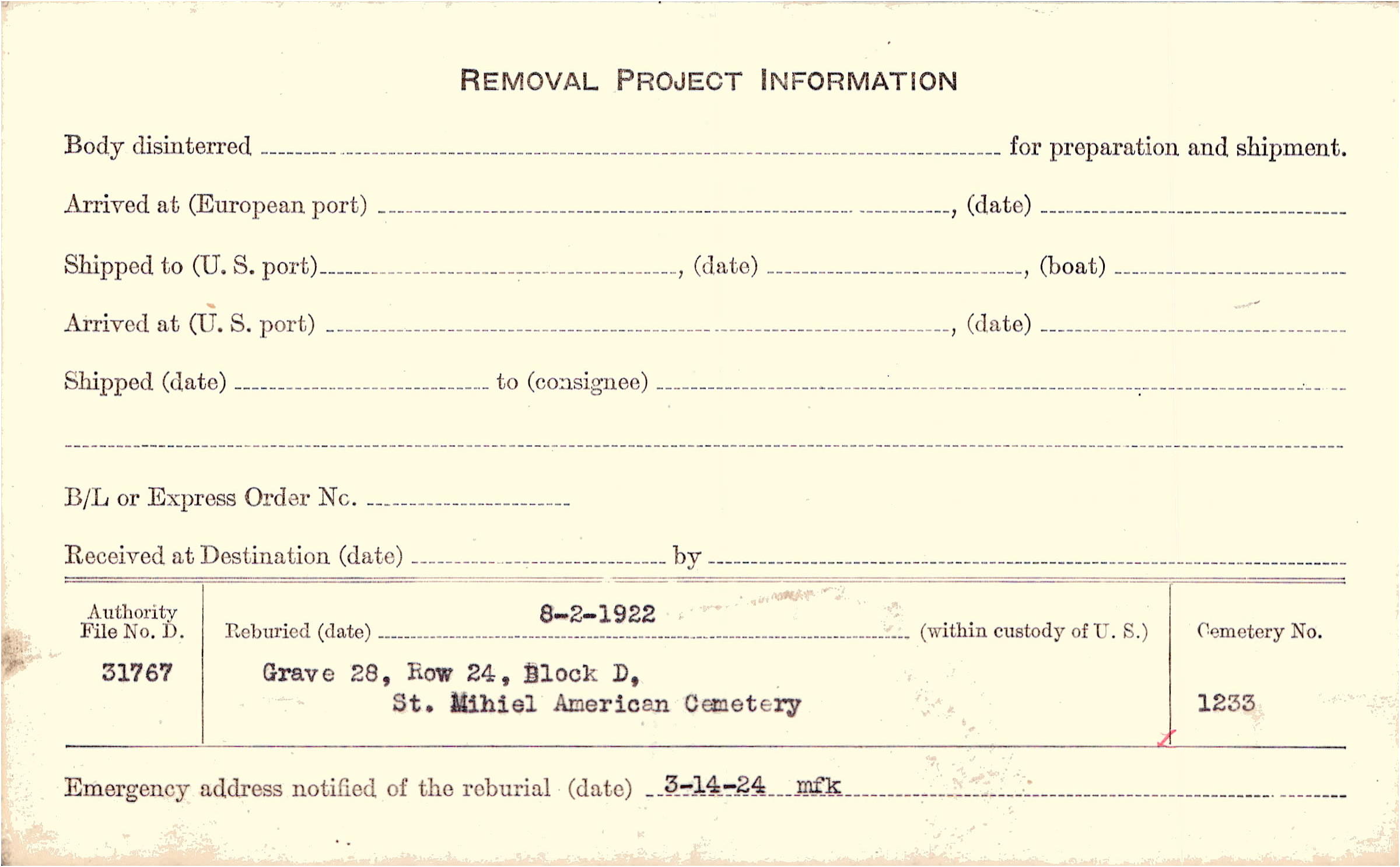 Grave 68, Section 6, Plot 2, St. Mihiel American Cemetery, Thiaucourt, Meurthe-et-Moselle