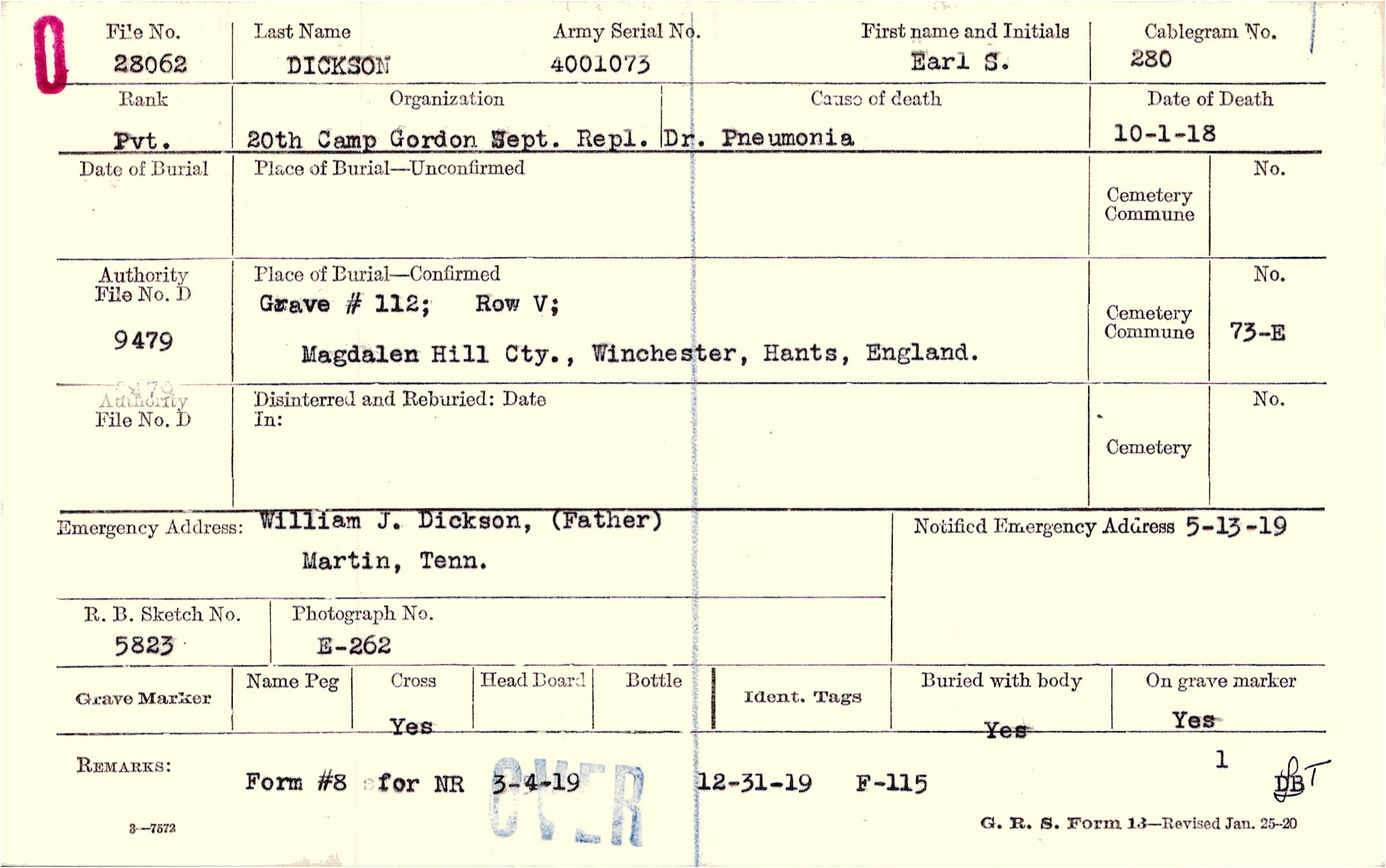 Grave # 112, Row V, Magdalen Hill Cty., Winchester, Hants, England