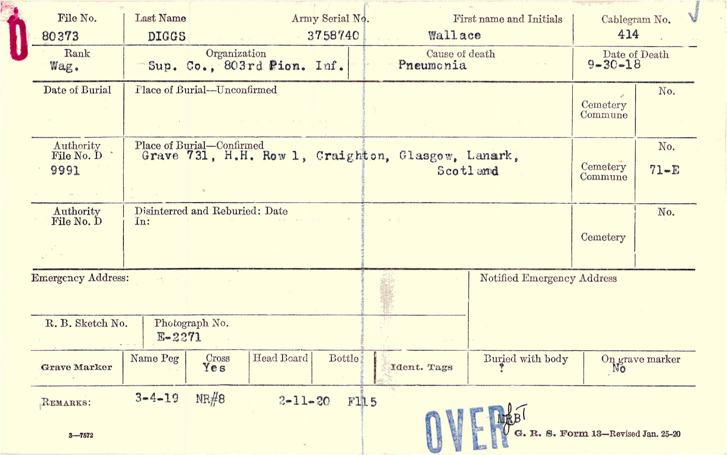 Grave 731, H.H. Row 1, Craighton, Glasgow, Lanark, Scotland