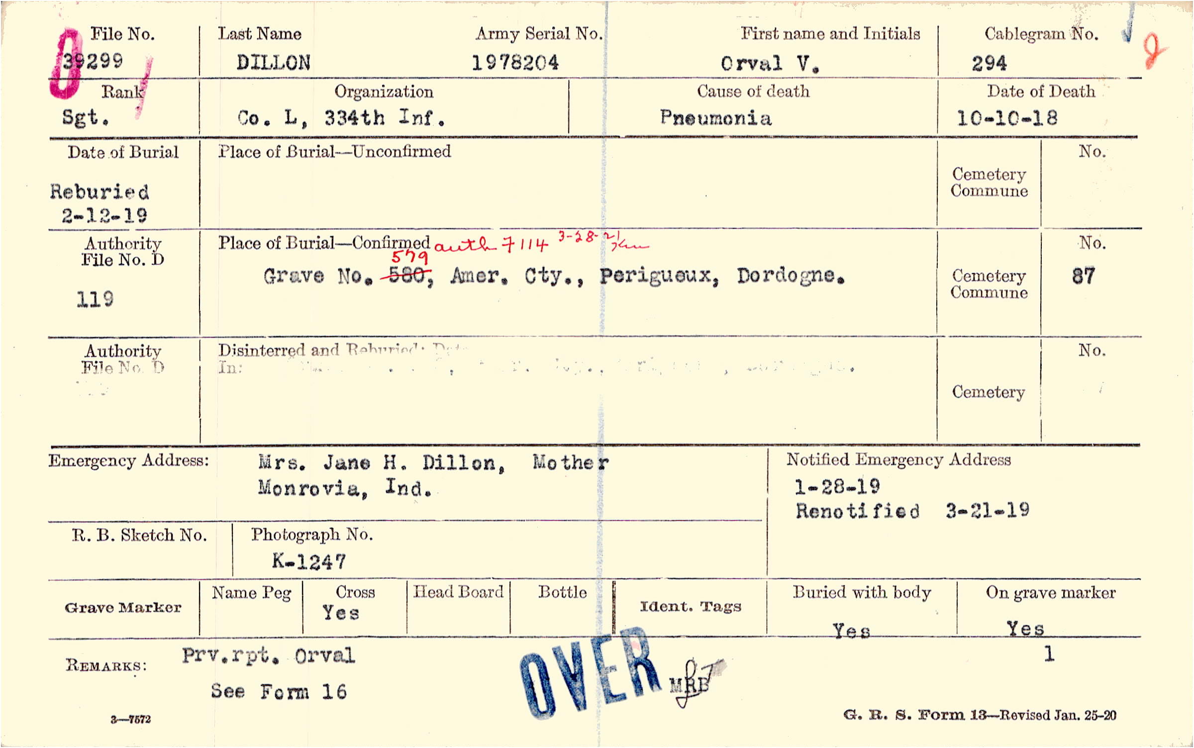 Reburied 2/12/1919