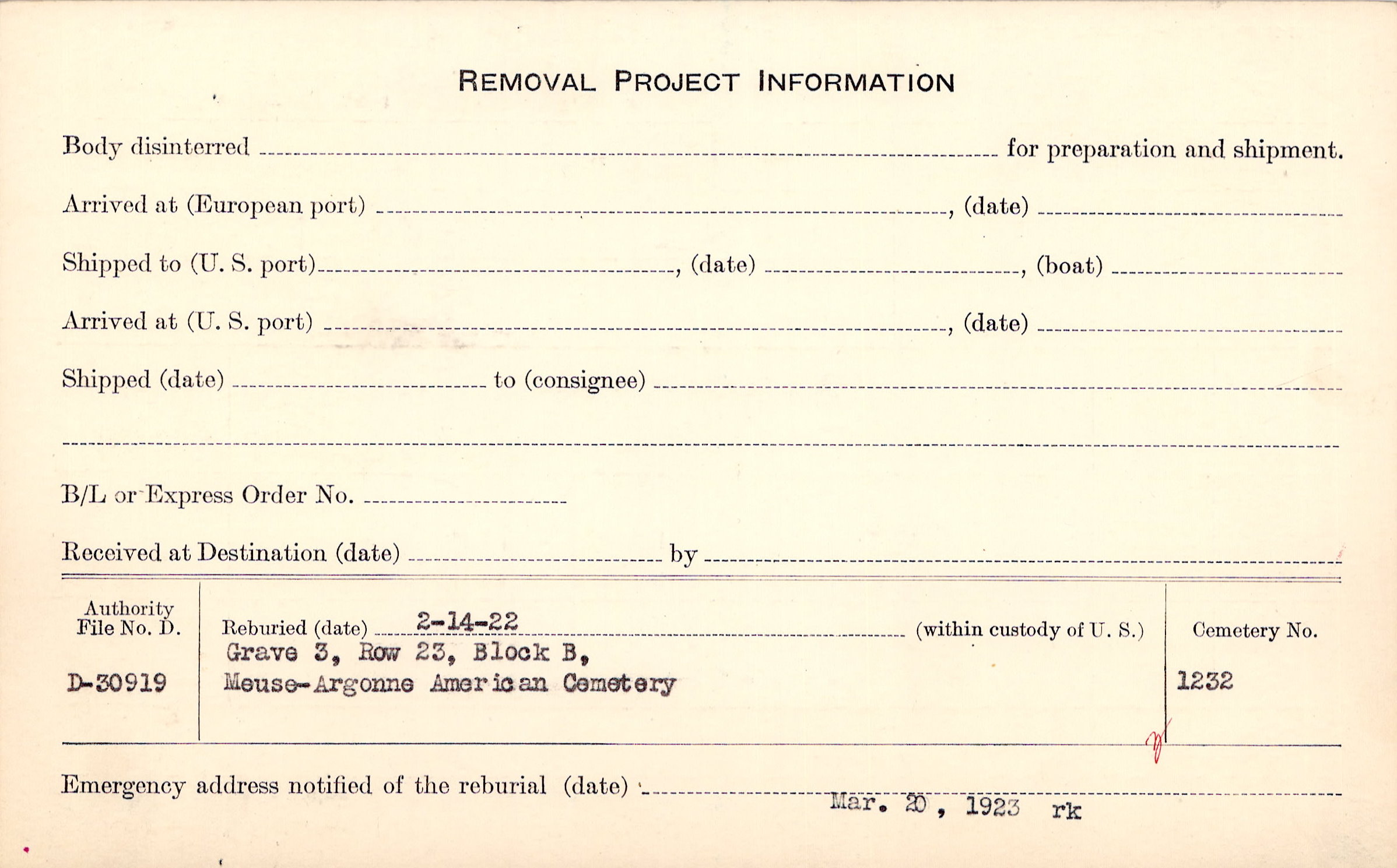 Grave 27, Plot 1, Battle Area Cty., Apremont, Ardennes