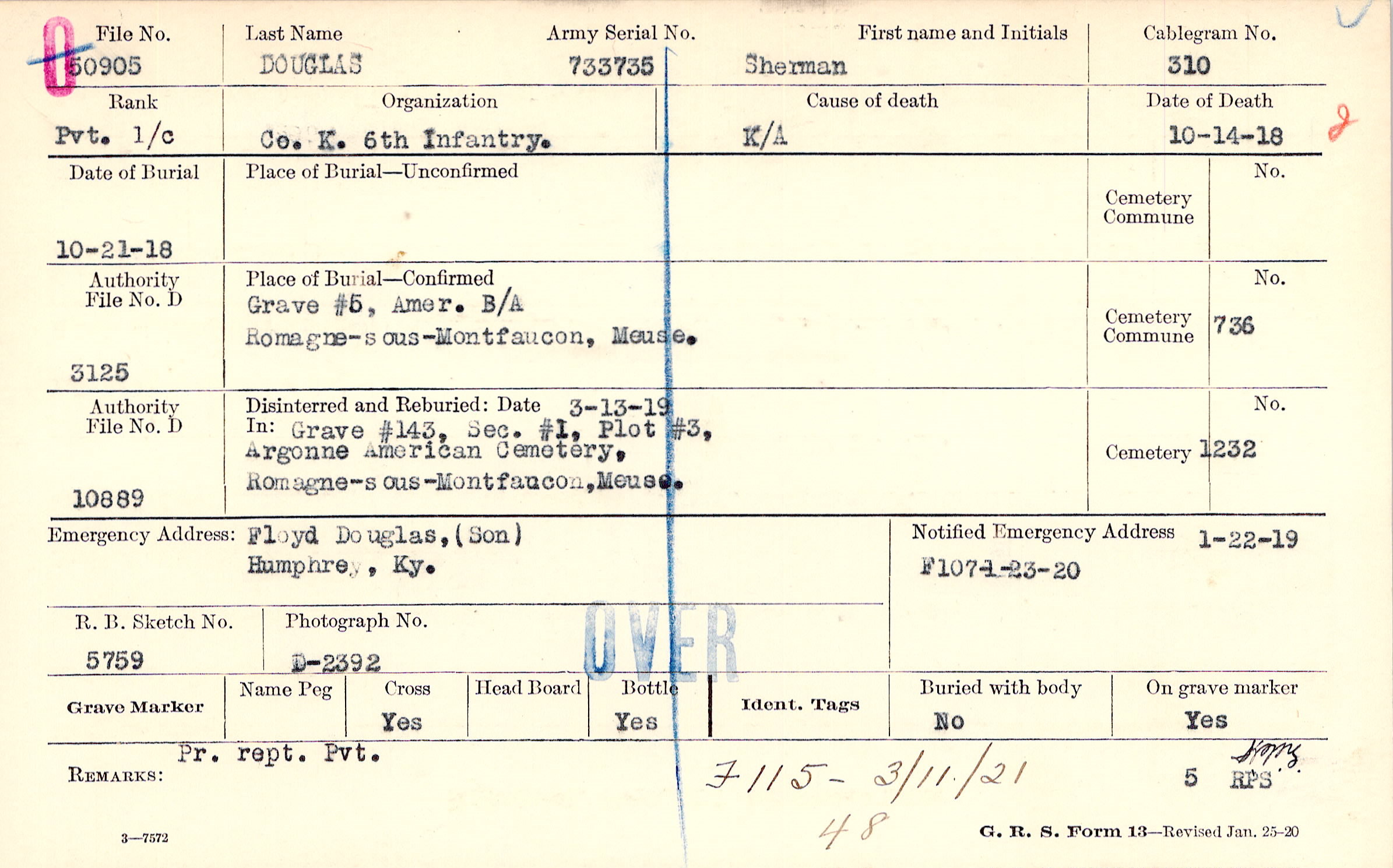 Grave #5, Amer. B/A Romagne-sous- Montfaucon, Meuse.