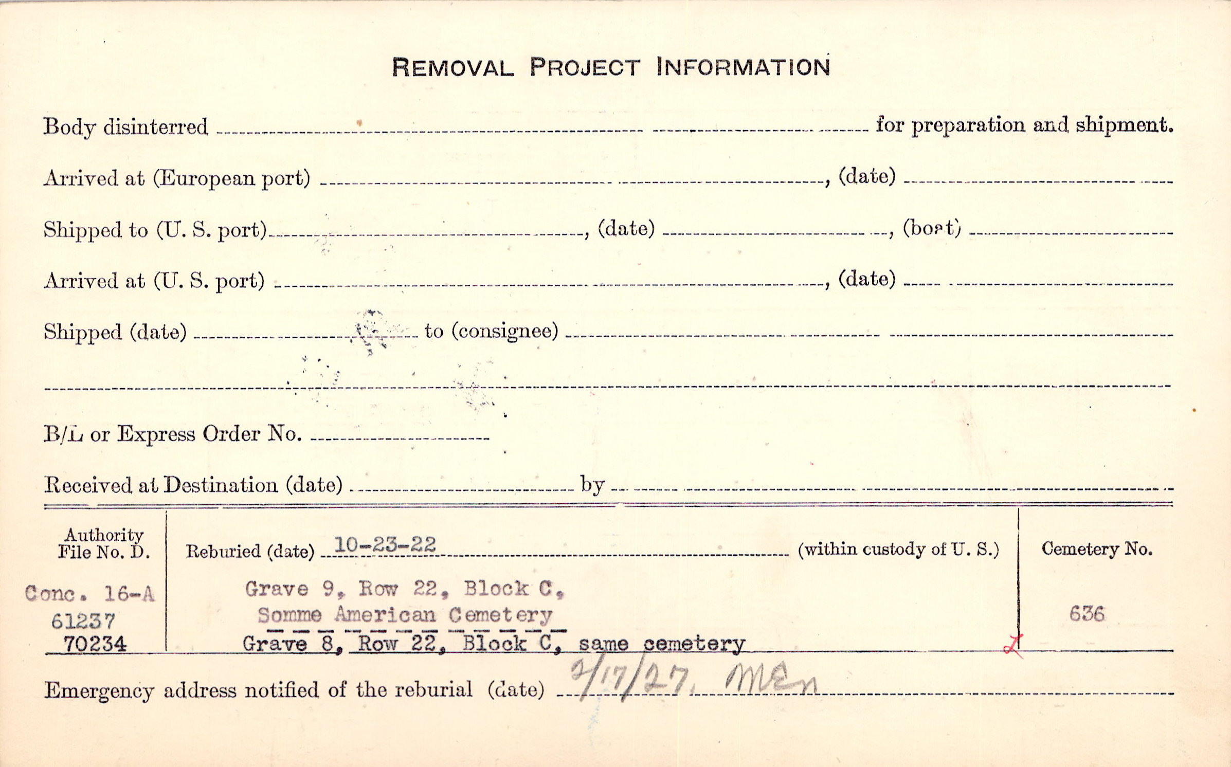 Prior Burial in Foreign Cemetery |