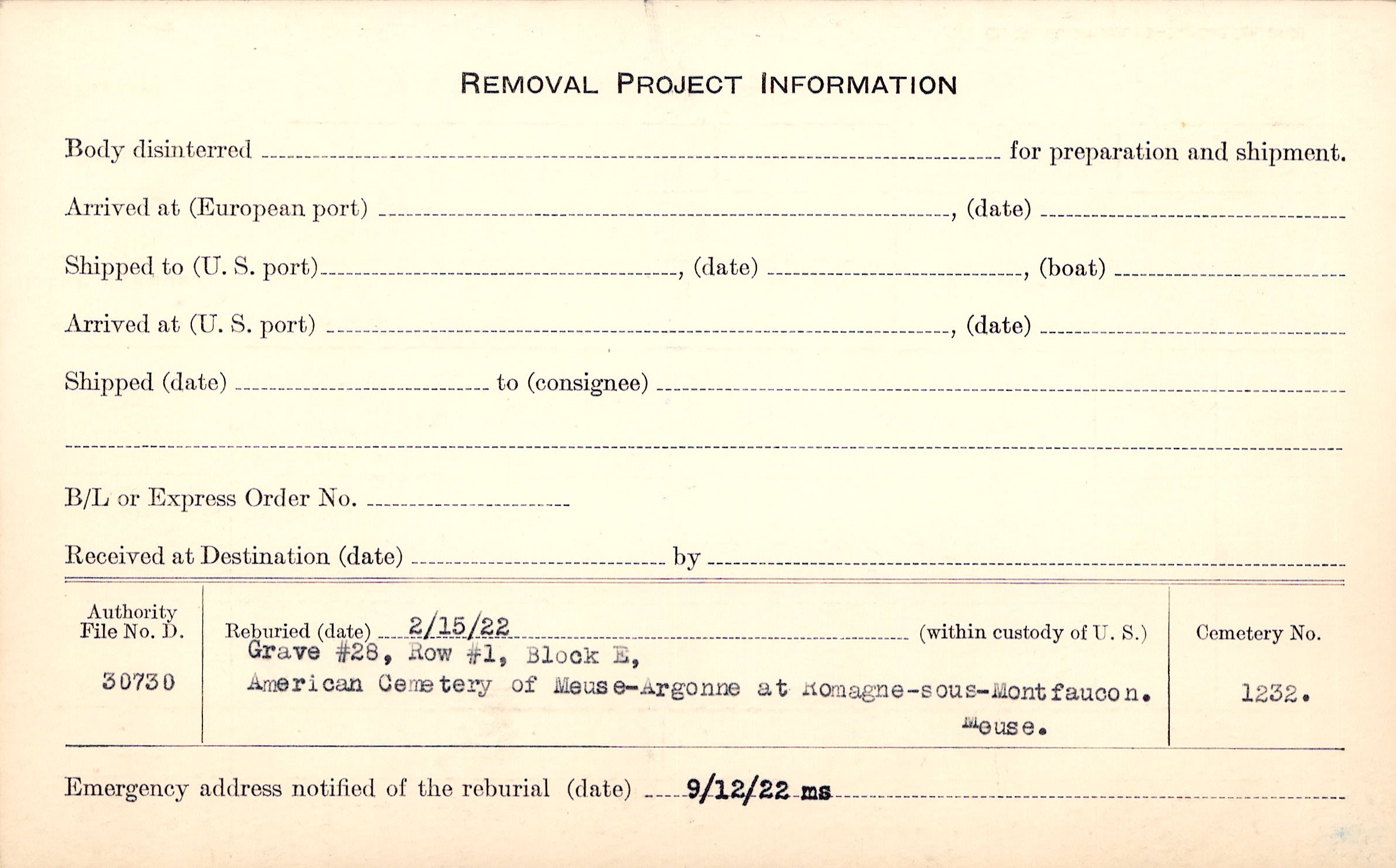 Grave 138, Section 16, Plot 3, Argonne American Cemetery, Romagne-sous-Montfaucon, Meuse