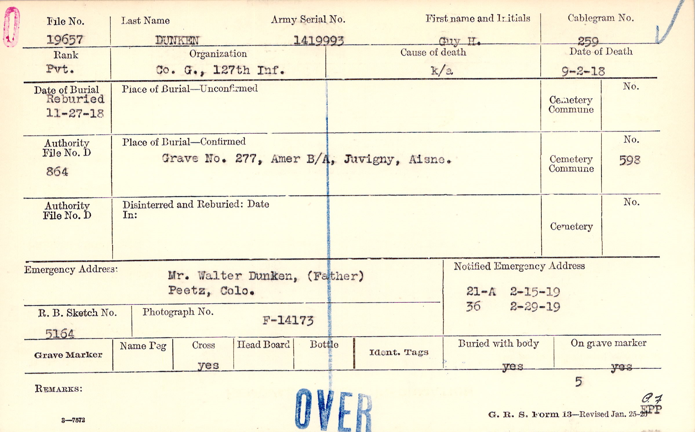 Grave 277, Amer. B/A, Juvigny, Aisne